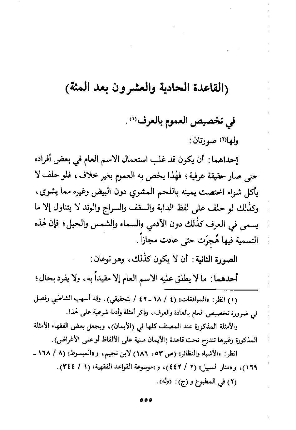 (¬1) انظر: "الموافقات" (4/ 18 - 42/ بتحقيقي). وقد أسهب الشاطبي وفصل في ضرورة تخصيص الحام بالعادة والعرف، وذكر أمثلة وأدلة شرعية على هذا.