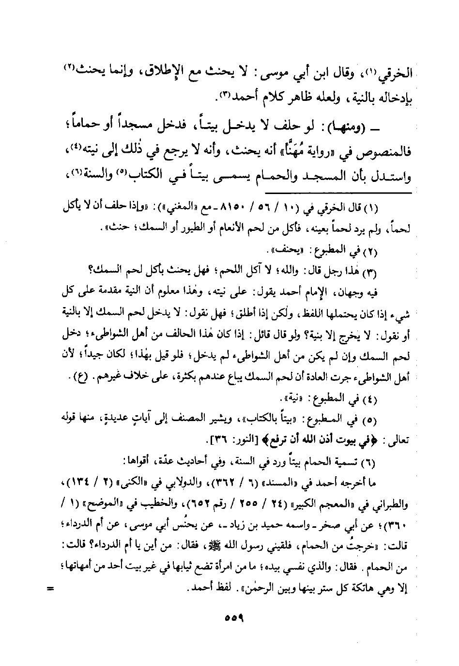 - (ومنها): لو حلف لا يدخل بيتًا، فدخل مسجدًا أو حمامًا؛ فالمنصوص في "رواية مُهَنَّأ" أنه يحنث، وأنه لا يرجع في ذلك إلى نيته (¬4)، واستدل بأن المسجد والحمام يسمى بيتًا في الكتاب (¬5) والسنة (¬6)،