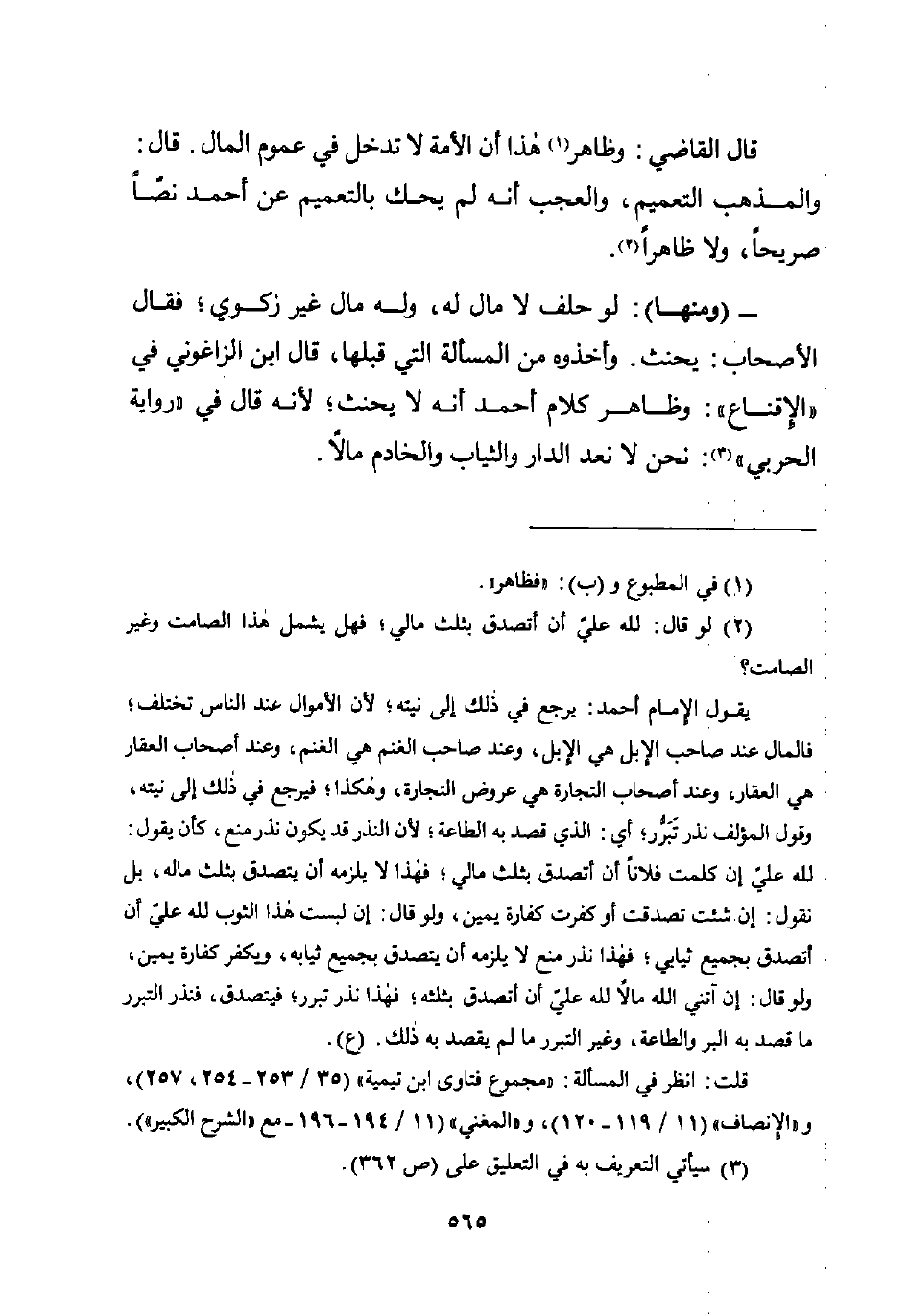 يقول الإمام أحمد: يرجع في ذلك إلى نيته؛ لأن الأموال عند الناس تختلف؛ فالمال عند صاحب الإبل هي الإِبل، وعند صاحب الغنم هي الغنم، وعند أصحاب العقار هي العقار، وعند أصحاب التجارة هي عروض التجارة، وهكذا؛ فيرجع في ذلك إلى نيته، وقول المؤلف نذر تَبَرُّر؛ أي: الذي قصد به الطاعة؛ لأن النذر قد يكون نذر منع، كان يقول: للَّه عليّ إن كلمت فلانًا أن أتصدق بثلث مالي؛ فهذا لا يلزمه أن يتصدق بثلث ماله، بل نقول: إن شئت تصدقت أو كفرت كفارة يمين، ولو قال: إن لبست هذا الثوب للَّه عليّ أن أتصدق بجميع ثيابي؛ فهذا نذر منع لا يلزمه أن يتصدق بجميع ثيابه، ويكفر كفارة يمين، ولو قال: إن آتني اللَّه مالًا للَّه عليّ أن أتصدق بثلثه؛ فهذا نذر تبرر؛ فيتصدق، فنذر التبرر ما قصد به البر والطاعة، وغير التبرر ما لم يقصد به ذلك. (ع).