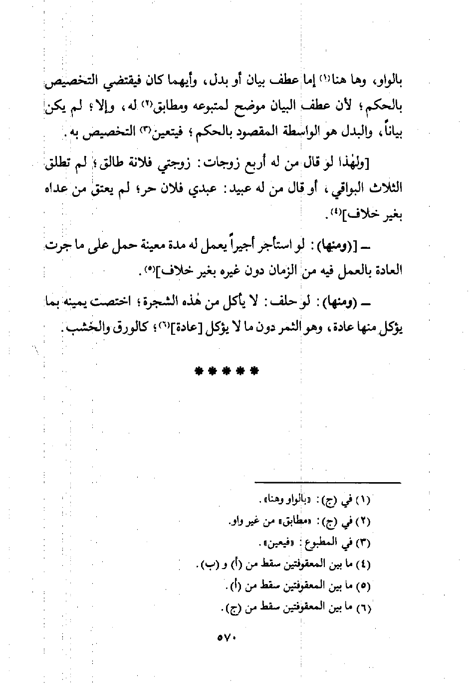 - (ومنها): لو حلف: لا يأكل من هذه الشجرة؛ اختصت يمينه بما يؤكل منها عادة، وهو الثمر دون ما لا يؤكل [عادة] (¬6)؛ كالورق والخشب.
