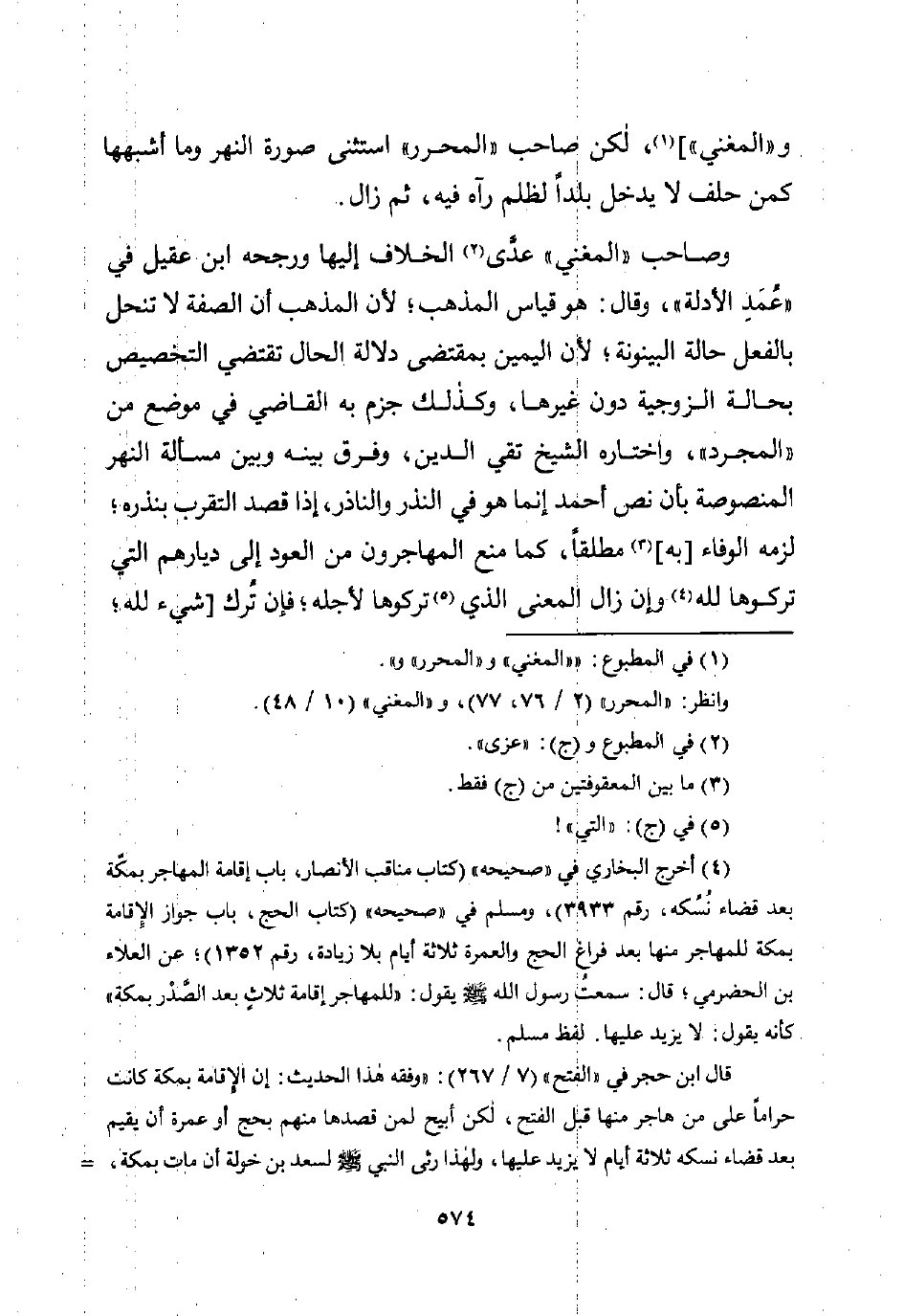 (¬4) أخرج البخاري في "صحيحه" (كتاب مناقب الأنصار، باب إقامة المهاجر بمكّة بعد قضاء نُسُكه، رقم 3933)، ومسلم في "صحيحه" (كتاب الحج، باب جواز الإقامة بمكة للمهاجر مها بعد فراغ الحج والعمرة ثلاثة أيام بلا زيادة، رقم 1352)؛ عن العلاء بن الحضرمي؛ قال: سمعت رسول اللَّه -صلى اللَّه عليه وسلم- يقول: "للمهاجر إقامة ثلاثٍ بعد الصَّدْر بمكة" كأنه يقول: لا يزيد عليها. لفظ مسلم.