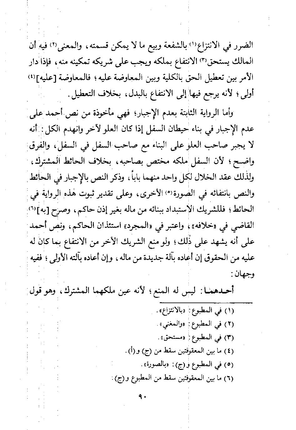 وأما الرواية الثابتة بعدم الإِجبار؛ فهي مأخوذة من نص أحمد على عدم الإِجبار في بناء حيطان السفل إذا كان العلو لآخر وانهدم الكل: أنه لا يجبر صاحب العلو على البناء مع صاحب السفل في السفل، والفرق واضح؛ لأن السفل ملكه مختص بصاحبه، بخلاف الحائط المشترك، ولذلك عقد الخلال لكل واحد منهما بابًا، وذكر النص بالإِجبار في الحائط والنص بانتفائه في الصورة (¬5) الأخرى، وعلى تقدير ثبوت هذه الرواية في الحائط؛ فللشريك الاستبداد ببنائه من ماله بغير إذن حاكم، وصرح [به] (¬6) القاضي في "خلافه"، واعتبر في "المجرد" استئذان الحاكم، ونص أحمد على أنه يشهد على ذلك؛ ولو منع الشريك الآخر من الانتفاع بما كان له عليه من الحقوق إن أعاده بآلة جديدة من ماله، وإن أعاده بآلته الأولى؛ ففيه وجهان: