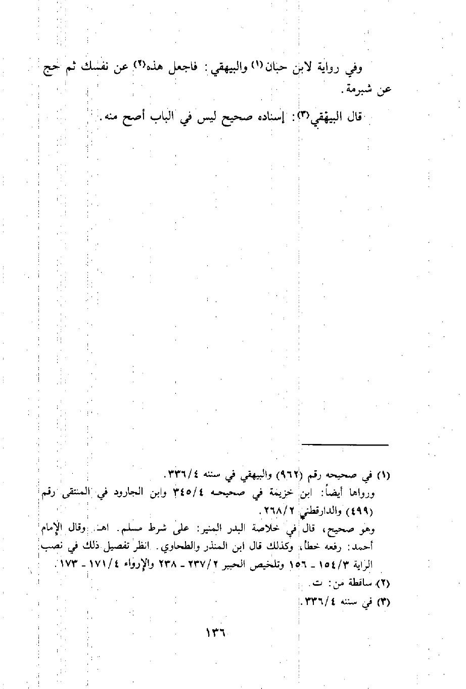 الله صَلَّى اللَّهُ عَلَيْهِ وَسَلَّم َ أَيّمَا صبي حج ثمَّ بلغ الْحِنْث فَعَلَيهِ أَن يحجّ حجَّة أُخْرَى وَأَيّمَا أَعْرَابِي حج ثمَّ هَاجر فَعَلَيهِ حجَّة أُخْرَى وَأَيّمَا عبد حج ثمَّ أعتق فَعَلَيهِ حجَّة أُخْرَى رَوَاهُ الْحَاكِم وَالْبَيْهَقِيّ وَاللَّفْظ لَهُ قَالَ الْحَاكِم صَحِيح عَلَى شَرط الشَّيْخَيْنِ وَقَالَ ابْن حزم رُوَاته ثِقَات وَقَالَ الْبَيْهَقِيّ تفرد بِرَفْعِهِ مُحَمَّد بن الْمنْهَال عَن يزِيد بن زُرَيْع عَن شُعْبَة قلت قد تَابعه الْحَارِث بن سريع الْخَوَارِزْمِيّ النقال عَن يزِيد بن زُرَيْع عَن شُعْبَة كَمَا ذكره الْخَطِيب فِي تَارِيخ بَغْدَاد ثمَّ قَالَ لم يرفعهُ إِلَّا يزِيد بن زُرَيْع عَن شُعْبَة وَهُوَ غَرِيب وَأخرجه ابْن أبي شيبَة فِي مُصَنفه عَن أبي مُعَاوِيَة عَن الْأَعْمَش عَن أبي ظبْيَان عَن ابْن عَبَّاس قَالَ احْفَظُوا عني وَلَا تَقولُوا قَالَ ابْن عَبَّاس أَيّمَا عبد حج بِهِ أَهله الحَدِيث وَهَذَا ظَاهر فِي رَفعه بل قَطْعِيّ
