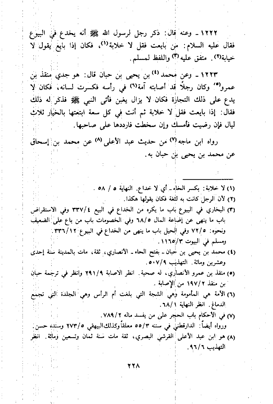 1216 - وَعَن ابْن عمر رَضِيَ اللَّهُ عَنْهما أَن رَسُول الله صَلَّى اللَّهُ عَلَيْهِ وَسَلَّم َ لعن فِي الْخمر عشرَة مِنْهَا بَائِعهَا ومبتاعها رَوَاهُ أَبُو دَاوُد وَلم يُضعفهُ وَفِي إِسْنَاده عبد الرَّحْمَن الغافقي قَالَ