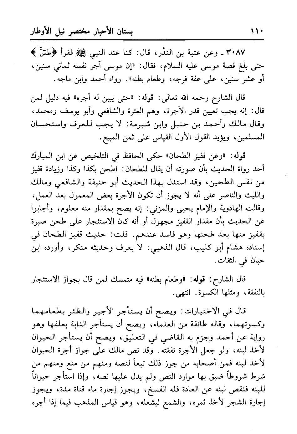 قَالَ الشَّارِحُ رَحِمَهُ اللهُ تَعَالَى: قَوْلُهُ: (حَتَّى يُبَيَّنَ لَهُ أَجْرُهُ) فِيهِ دَلِيلٌ لِمَنْ قَالَ: إنَّهُ يَجِبُ تَعْيِينُ قَدْرِ الأُجْرَةِ وَهُمْ الْعِتْرَةُ وَالشَّافِعِيُّ وَأَبُو يُوسُفَ وَمُحَمَّدٌ وَقَالَ مَالِكٌ وَأَحْمَدُ بْنُ حَنْبَلٍ وَابْنُ شُبْرُمَةَ: لا يَجِبُ لِلْعُرْفِ وَاسْتِحْسَانِ الْمُسْلِمِينَ، وَيُؤَيِّدُ الْقَوْلَ الأَوَّلَ الْقِيَاسُ عَلَى ثَمَنِ الْمَبِيعِ.