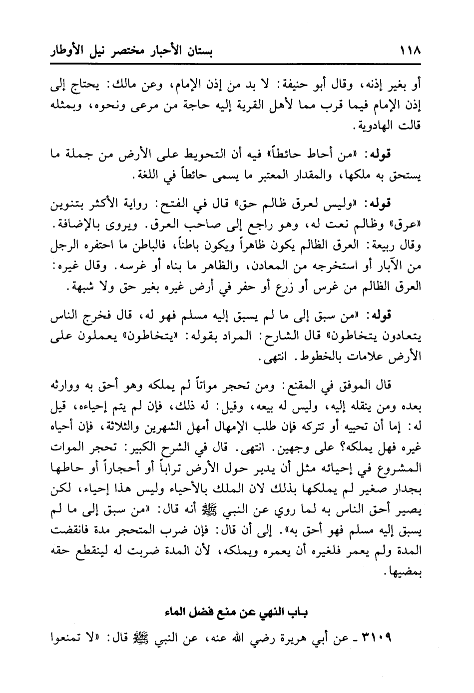 3109- عَنْ أَبِي هُرَيْرَةَ رَضِيَ اللهُ عَنْهُ عَنْ النَّبِيِّ - صلى الله عليه وسلم - قَالَ: «لا تَمْنَعُوا