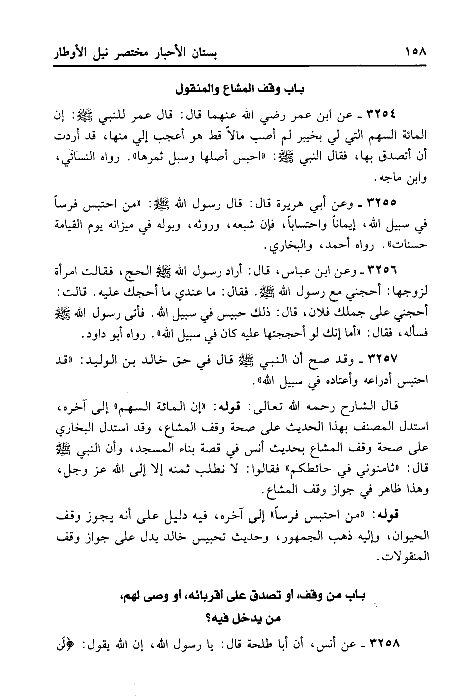 3254- عَنْ ابْنِ عُمَرَ رَضِيَ اللَّهُ عَنْهُما قَالَ: قَالَ عُمَرُ لِلنَّبِيِّ - صلى الله عليه وسلم -: إنَّ الْمِائَةَ السَّهْمِ الَّتِي لِي بِخَيْبَرَ لَمْ أُصِبْ مَالًا قَطُّ أَعْجَبَ إلَيَّ مِنْهَا قَدْ أَرَدْت أَنْ