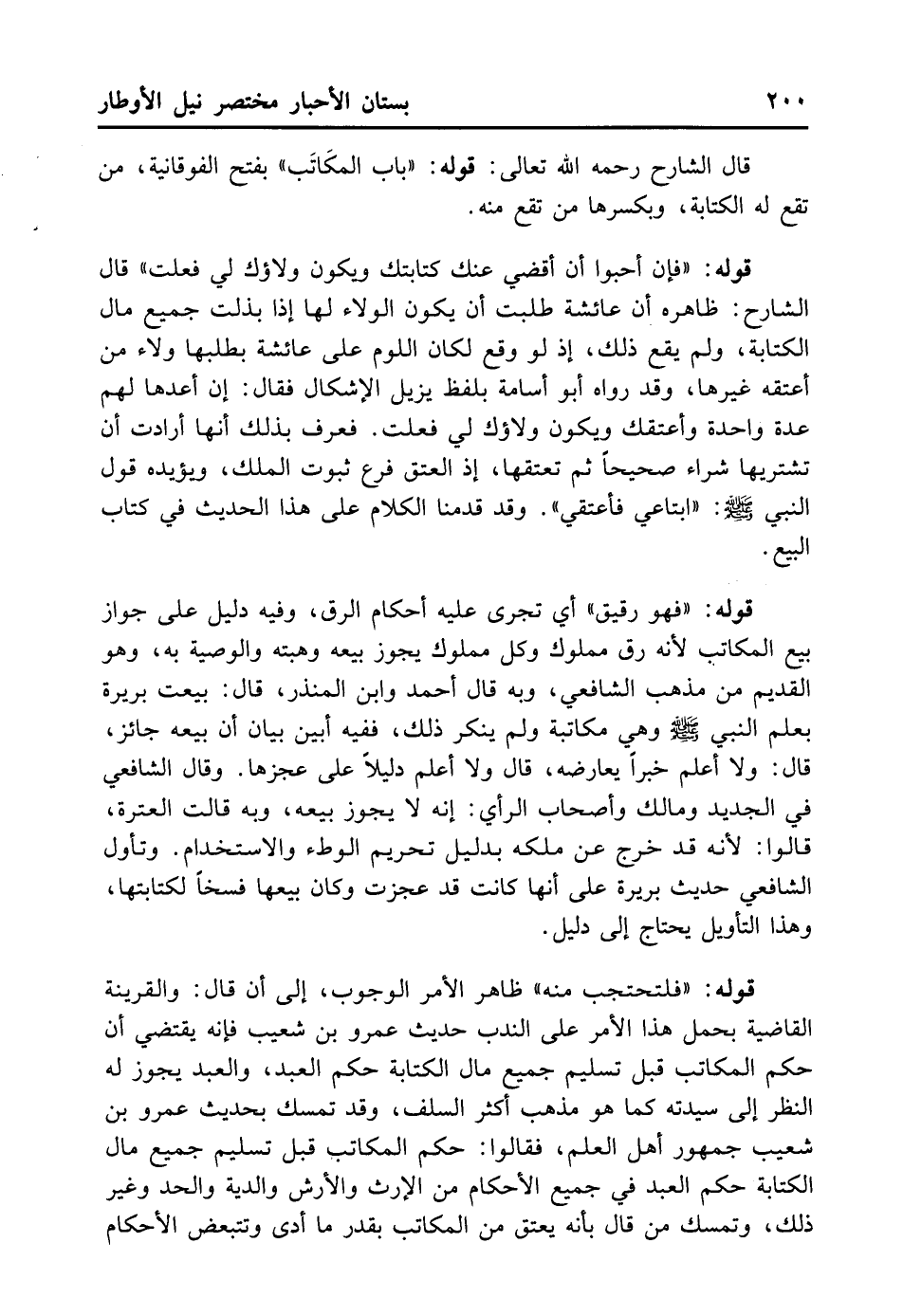 قَالَ الشَّارِحُ رَحِمَهُ اللهُ تَعَالَى: قَوْلُهُ: (بَاب الْمكَاتَب) بِفَتْح الْفَوْقَانِيَّة، من تَقَعْ لَهُ الْكِتَابَةْ وَبِكَسْرِهَا مَنْ تقع مِنْهُ.