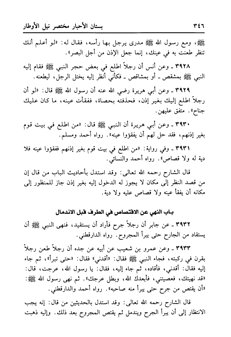 3930- وَعَنْ أَبِي هُرَيْرَةَ أَنَّ النَّبِيِّ - صلى الله عليه وسلم - قَالَ: «مَنْ اطَّلَعَ فِي بَيْتِ قَوْمٍ بِغَيْرِ إذْنِهِمْ فَقَدْ حَلَّ لَهُمْ أَنْ يَفْقَئُوا عَيْنَهُ» . رَوَاهُ أَحْمَدُ وَمُسْلِمٌ.