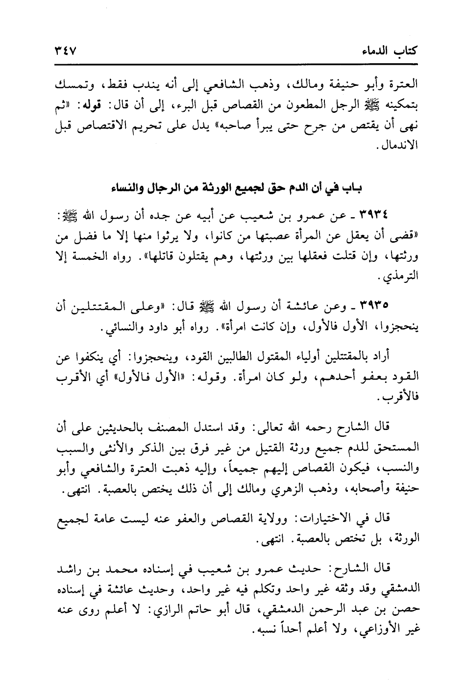 3934- عَنْ عَمْرِو بْنِ شُعَيْبٍ عَنْ أَبِيهِ عَنْ جَدِّهِ أَنَّ رَسُولَ اللَّهِ - صلى الله عليه وسلم - قَضَى أَنْ يَعْقِلَ عَنْ الْمَرْأَةِ عَصَبَتُهَا مَنْ كَانُوا وَلا يَرِثُوا مِنْهَا إلا مَا فَضَلَ عَنْ وَرَثَتِهَا وَإِنْ قَتَلَتْ فَعَقْلُهَا بَيْنَ وَرَثَتِهَا وَهُمْ يَقْتُلُونَ قَاتِلَهَا. رَوَاهُ الْخَمْسَةُ إلا التِّرْمِذِيَّ.