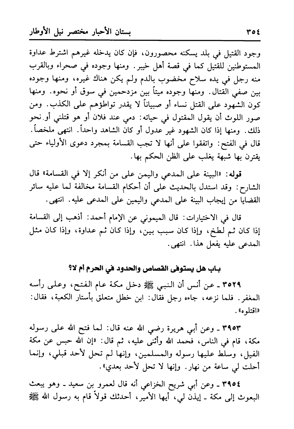قَوْلُهُ: «الْبَيِّنَةُ عَلَى الْمُدَّعِي وَالْيَمِينُ عَلَى مَنْ أَنْكَرَ إلا فِي الْقَسَامَةِ» قَالَ الشَّارِحُ: وَقَدْ اُسْتُدِلَّ بِالْحَدِيثِ عَلَى أَنَّ أَحْكَامَ الْقَسَامَةِ مُخَالِفَةٌ لِمَا عَلَيْهِ سَائِرُ الْقَضَايَا مِنْ إيجَابِ الْبَيِّنَةِ عَلَى الْمُدَّعِي وَالْيَمِينِ عَلَى الْمُدَّعَى عَلَيْهِ. انْتَهَى.