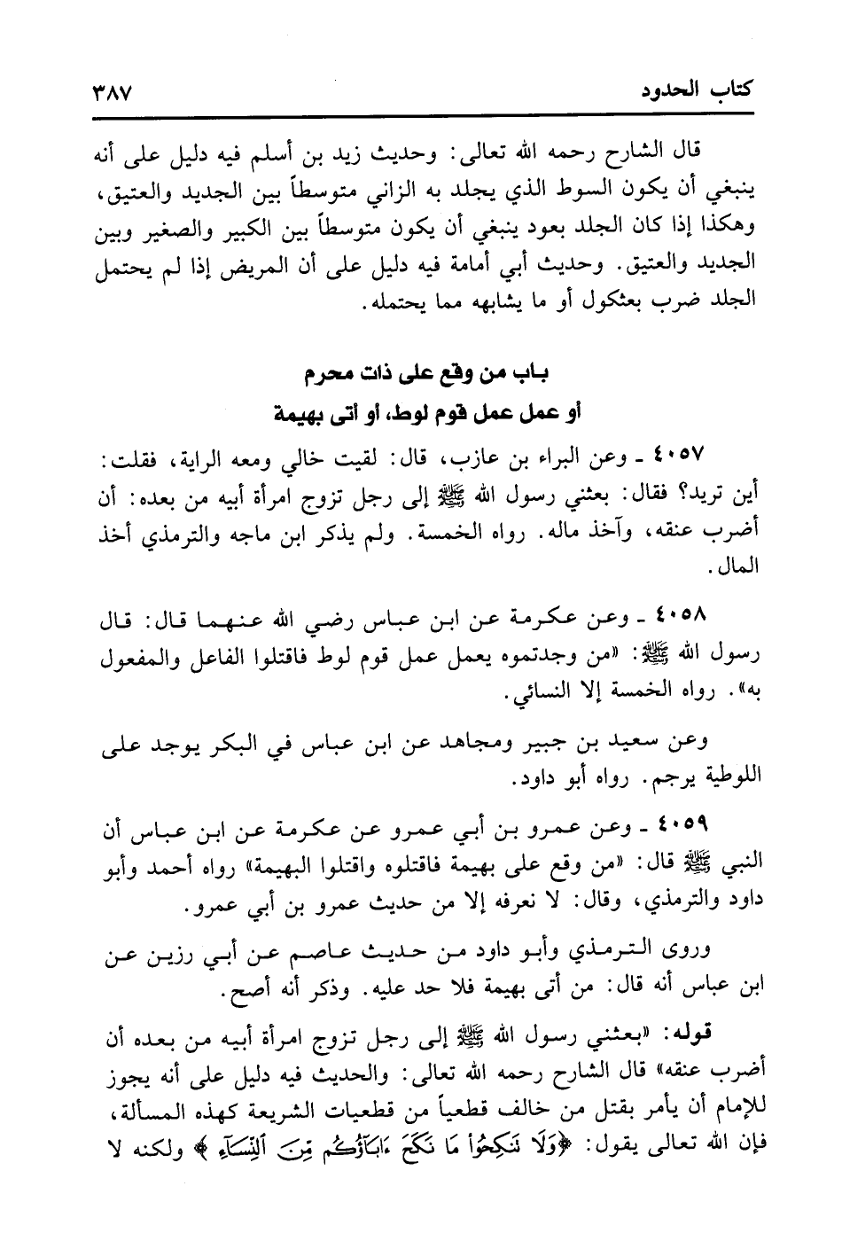 أَوْ عَمِلَ عَمَلَ قَوْمِ لُوطٍ أَوْ أَتَى بَهِيمَةً