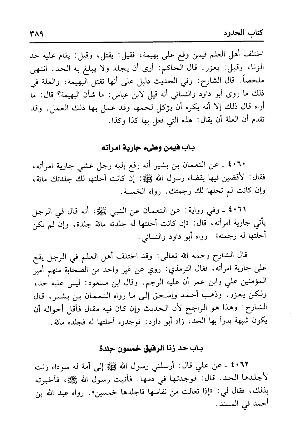 الشَّارِحُ: وَهَذَا هُوَ الرَّاجِحُ لأَنَّ الْحَدِيثَ وَإِنْ كَانَ فِيهِ مَقَال فَأَقَلُّ أَحْوَالِهِ أَنْ يَكُونَ شُبْهَةً يُدْرَأُ بِهَا الْحَدُّ. زَادَ أَبُو دَاوُد: فَوَجَدُوهُ أَحَلَّتْهَا لَهُ فَجَلَدَهُ مِائَةً.
