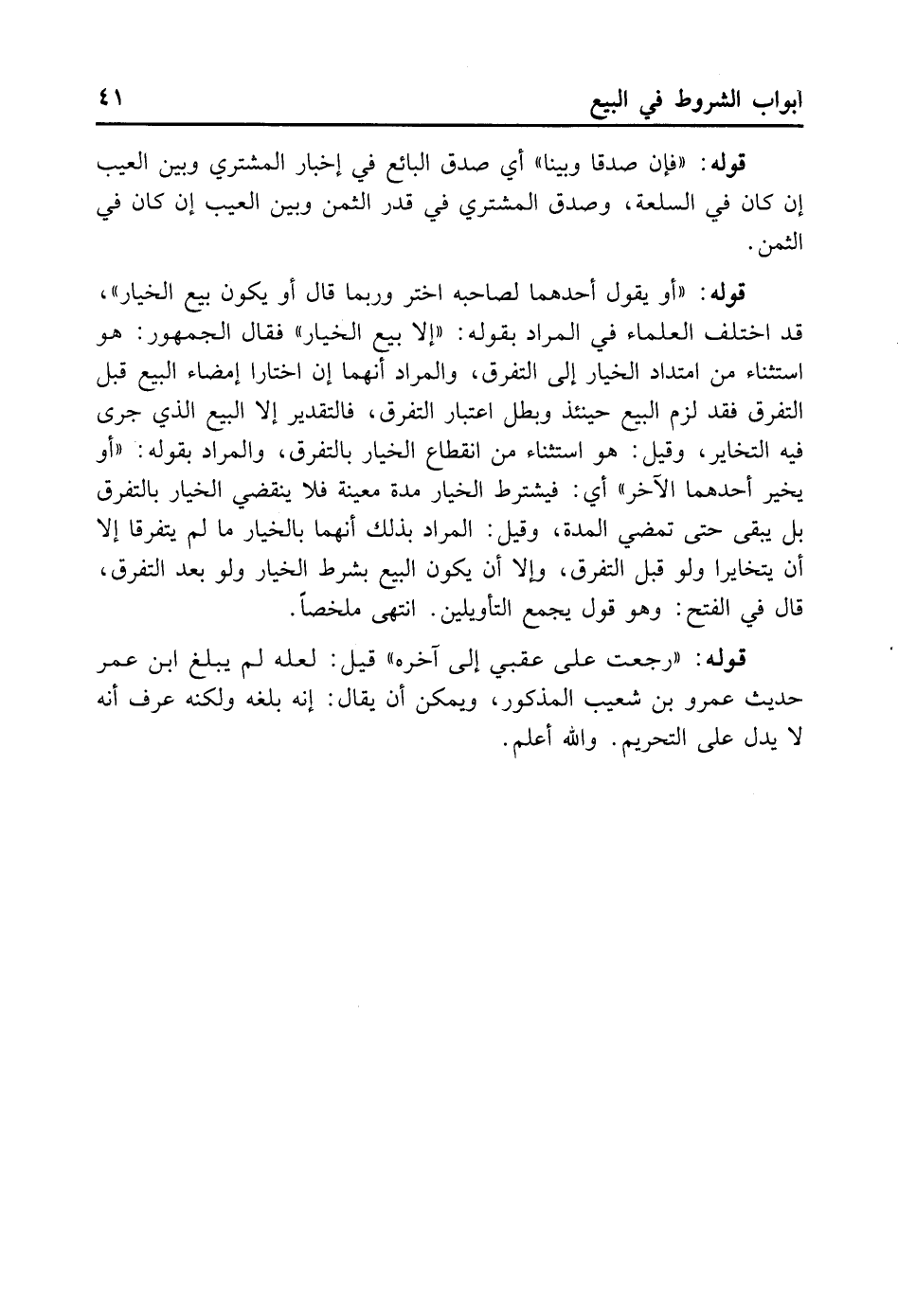 قَوْلُهُ: «أَوْ يَقُولَ أَحَدُهُمَا لِصَاحِبِهِ اخْتَرْ» وَرُبَّمَا قَالَ: أَوْ يَكُونُ بَيْعَ الْخِيَارِ، قَدْ اخْتَلَفَ الْعُلَمَاءُ فِي الْمُرَادِ بِقَوْلِهِ: «إلا بَيْعَ الْخِيَارِ» فَقَالَ الْجُمْهُورُ: هُوَ اسْتِثْنَاءٌ مِنْ امْتِدَادِ الْخِيَارِ إلَى التَّفَرُّقِ، وَالْمُرَادُ: أَنَّهُمَا إنْ اخْتَارَا إمْضَاءَ الْبَيْعِ قَبْلَ التَّفَرُّقِ فَقَدْ لَزِمَ الْبَيْعُ حِينَئِذٍ وَبَطَلَ اعْتِبَارُ التَّفَرُّقِ، فَالتَّقْدِيرُ: إلا الْبَيْعَ الَّذِي جَرَى فِيهِ التَّخَايُرُ، وَقِيلَ: هِو اسْتِثْنَاءٌ مِنْ انْقِطَاعِ الْخِيَارِ بِالتَّفَرُّقِ، وَالْمُرَادُ بِقَوْلِهِ أَوْ يُخَيِّرْ أَحَدُهُمَا الآخَرَ أَيْ: فَيَشْتَرِطُ الْخِيَارَ مُدَّةً مُعَيَّنَةً فَلا يَنْقَضِي الْخِيَارُ بِالتَّفَرُّقِ، بَلْ يَبْقَى حَتَّى تَمْضِيَ الْمُدَّةُ. وَقِيلَ: الْمُرَادُ بِذَلِكَ أَنَّهُمَا بِالْخِيَارِ مَا لَمْ يَتَفَرَّقَا إلا أَنْ يَتَخَايَرَا وَلَوْ قَبْلَ التَّفَرُّقِ، وَإِلا أَنْ يَكُونَ الْبَيْعُ بِشَرْطِ الْخِيَارِ وَلَوْ بَعْدَ التَّفَرُّقِ. قَالَ فِي الْفَتْحِ: وَهُوَ قَوْلٌ يَجْمَعُ التَّأْوِيلَيْنِ الأَوَّلَيْنِ. انْتَهَى. ملخصًا.