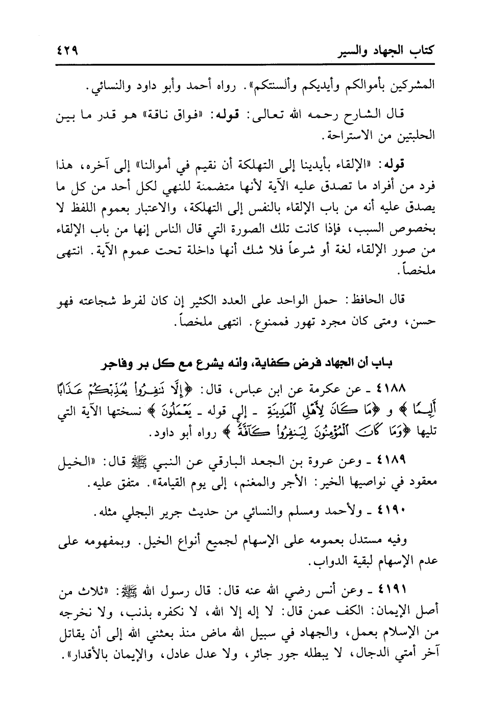 بَاب أَنَّ الْجِهَاد فَرْض كِفَايَة وَأَنَّهُ شُرِعَ مَعَ كُلّ بَرٍّ وَفَاجِر
