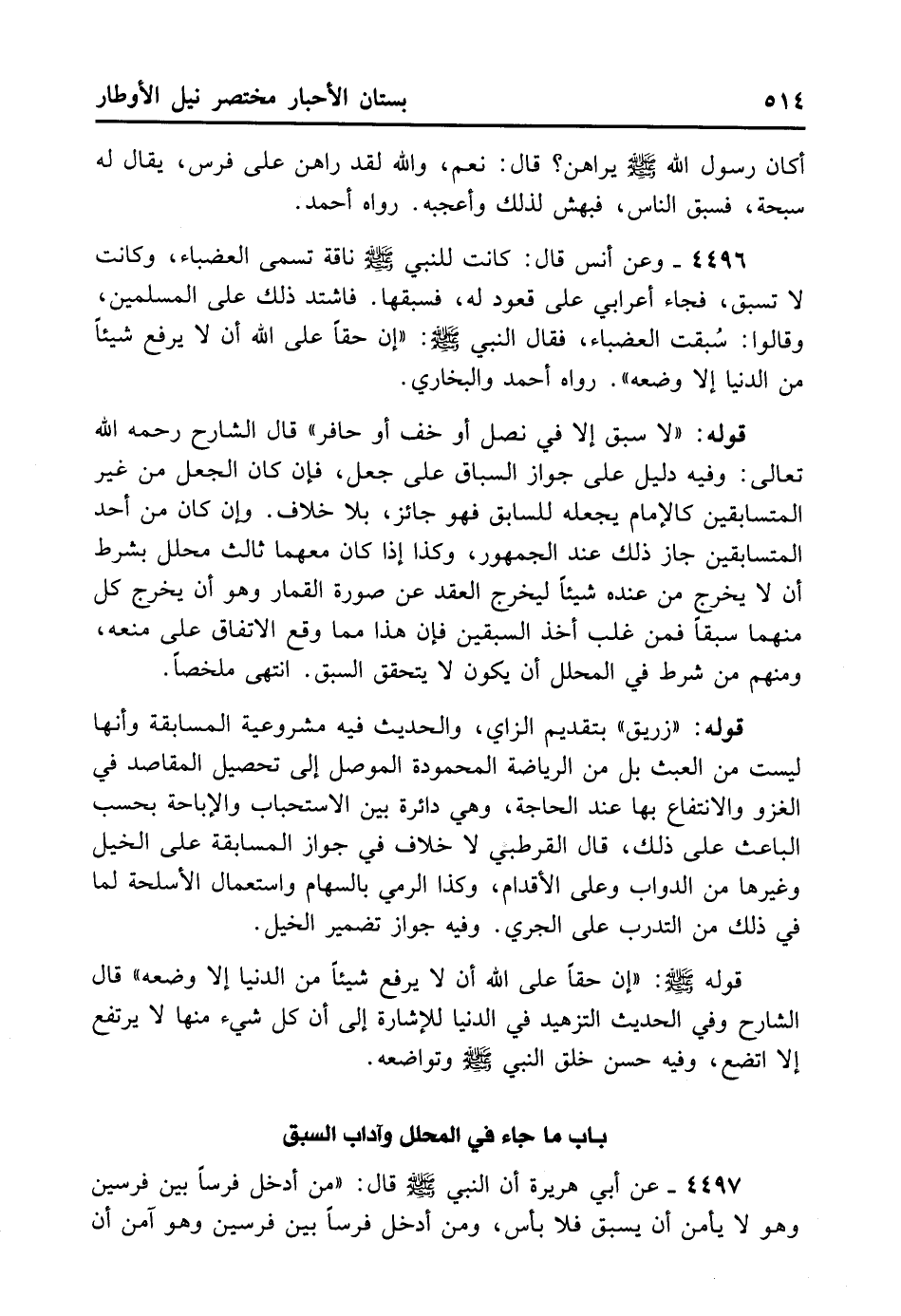 4497- عَنْ أَبِي هُرَيْرَةَ أَنَّ النَّبِيَّ - صلى الله عليه وسلم - قَالَ: «مَنْ أَدْخَلَ فَرَسًا بَيْنَ فَرَسَيْنِ وَهُوَ لا يَأْمَنُ أَنْ