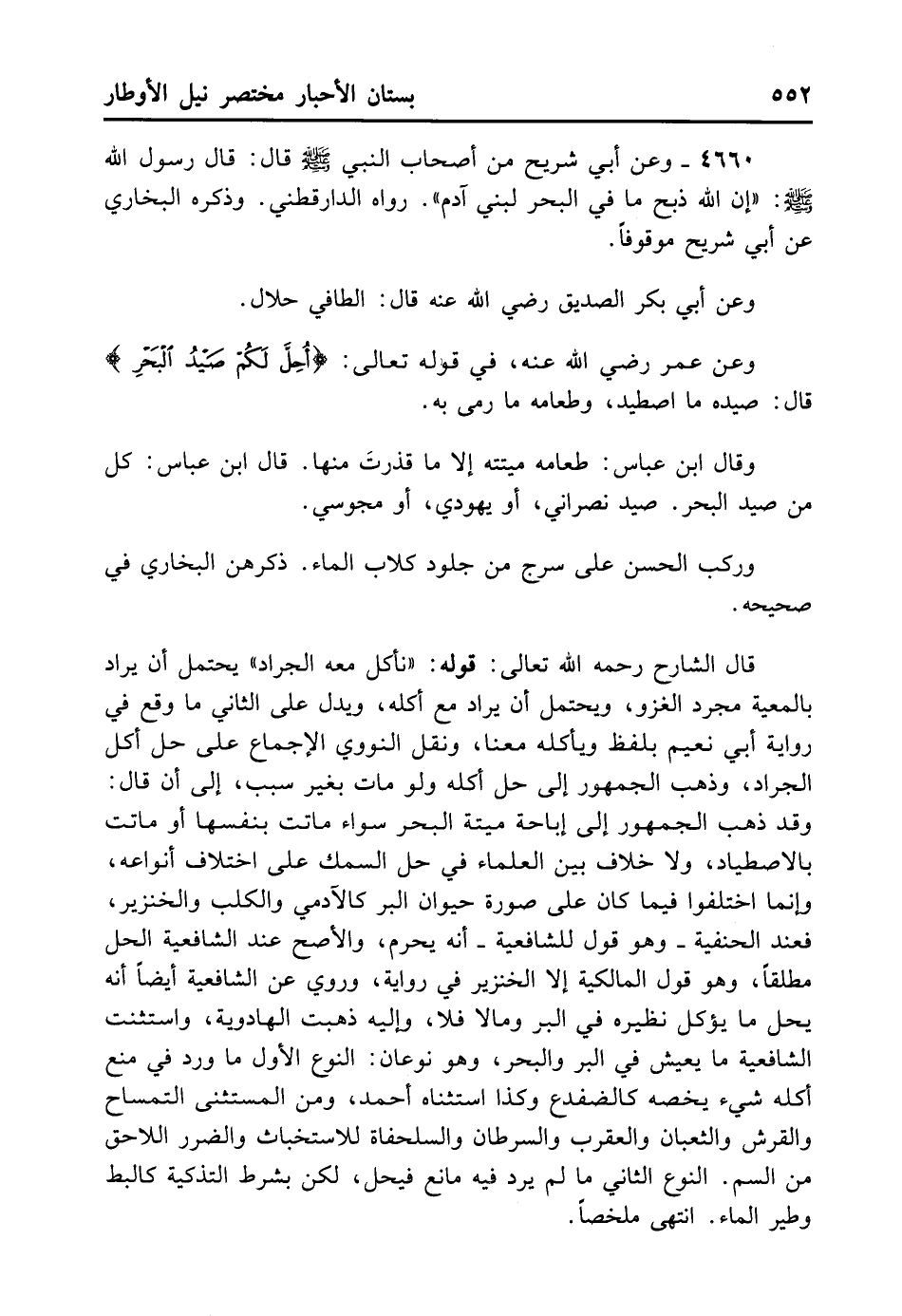4660- وَعَنْ أَبِي شُرَيْحٍ مِنْ أَصْحَابِ النَّبِيِّ - صلى الله عليه وسلم - قَالَ: قَالَ رَسُولُ اللهِ - صلى الله عليه وسلم -: «إنَّ اللهَ ذَبَحَ مَا فِي الْبَحْرِ لِبَنِي آدَمَ» . رَوَاهُ الدَّارَقُطْنِيّ وَذَكَرَهُ الْبُخَارِيُّ عَنْ أَبِي شُرَيْحٍ مَوْقُوفًا.