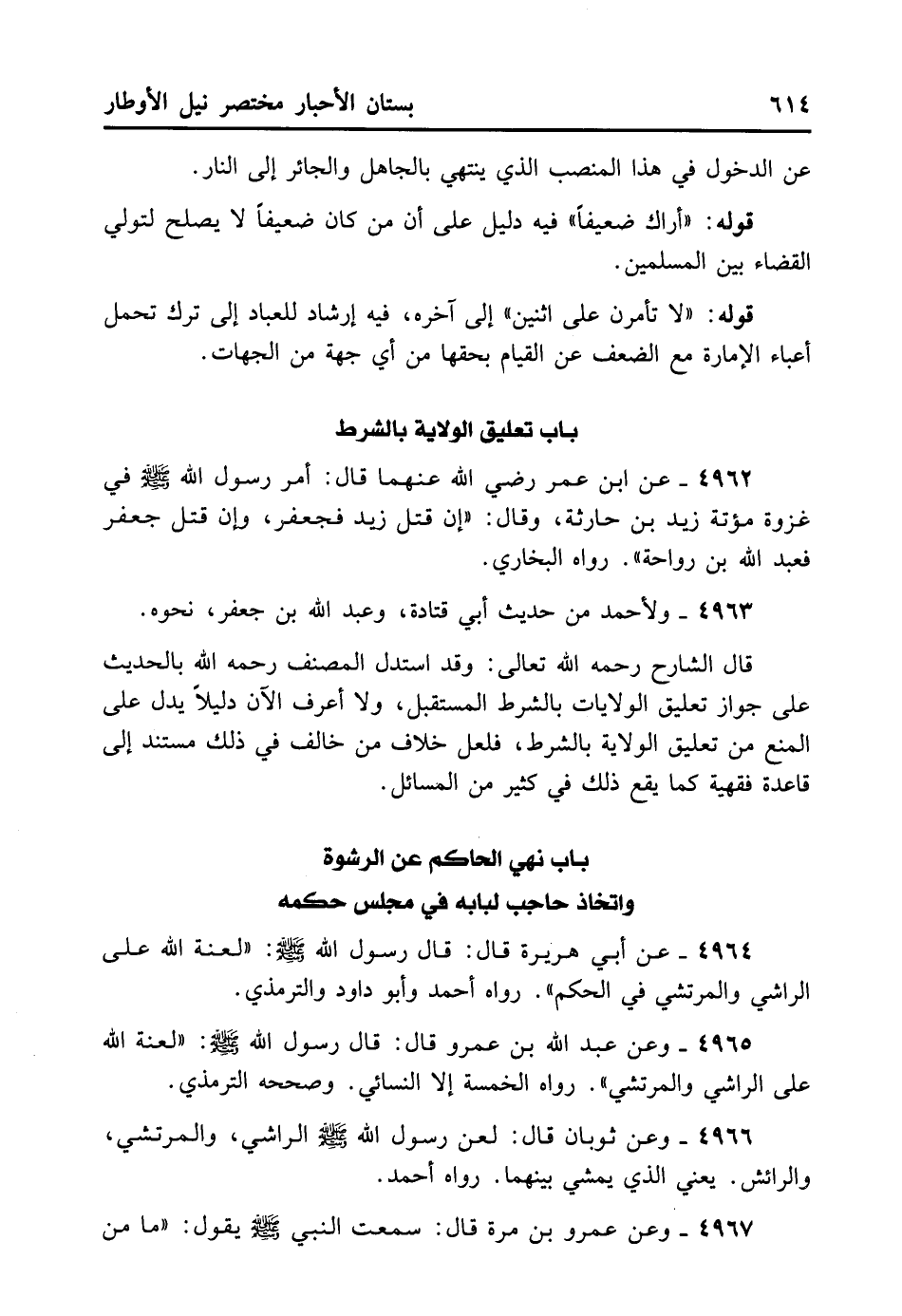 4965- وَعَنْ عَبْدِ اللهِ بْنِ عَمْرٍو قَالَ: قَالَ رَسُولُ اللهِ - صلى الله عليه وسلم -: «لَعْنَةُ اللهِ عَلَى الرَّاشِي وَالْمُرْتَشِي» . رَوَاهُ الْخَمْسَةُ إِلا النَّسَائِيّ وَصَحَّحَهُ التِّرْمِذِيُّ.