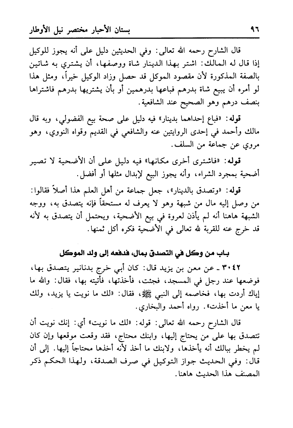 قَالَ الشَّارِحُ رَحِمَهُ اللهُ تَعَالَى: وَفِي الْحَدِيثَيْنِ دَلِيلٌ عَلَى أَنَّهُ يَجُوزُ لِلْوَكِيلِ إذَا قَالَ لَهُ الْمَالِكُ: اشْتَرِ بِهَذَا الدِّينَارِ شَاةً وَوَصَفَهَا أَنْ يَشْتَرِيَ بِهِ شَاتَيْنِ بِالصِّفَةِ الْمَذْكُورَةِ؛ لأَنَّ مَقْصُودَ الْمُوَكِّلِ قَدْ حَصَلَ وَزَادَ الْوَكِيلُ خَيْرًا، وَمِثْلُ هَذَا لَوْ أَمَرَهُ أَنْ يَبِيعَ شَاةً بِدِرْهَمٍ فَبَاعَهَا بِدِرْهَمَيْنِ، أَوْ بِأَنْ يَشْتَرِيَهَا بِدِرْهَمٍ فَاشْتَرَاهَا بِنِصْفِ دِرْهَمٍ، وَهُوَ الصَّحِيحُ عِنْدَ الشَّافِعِيَّةِ.