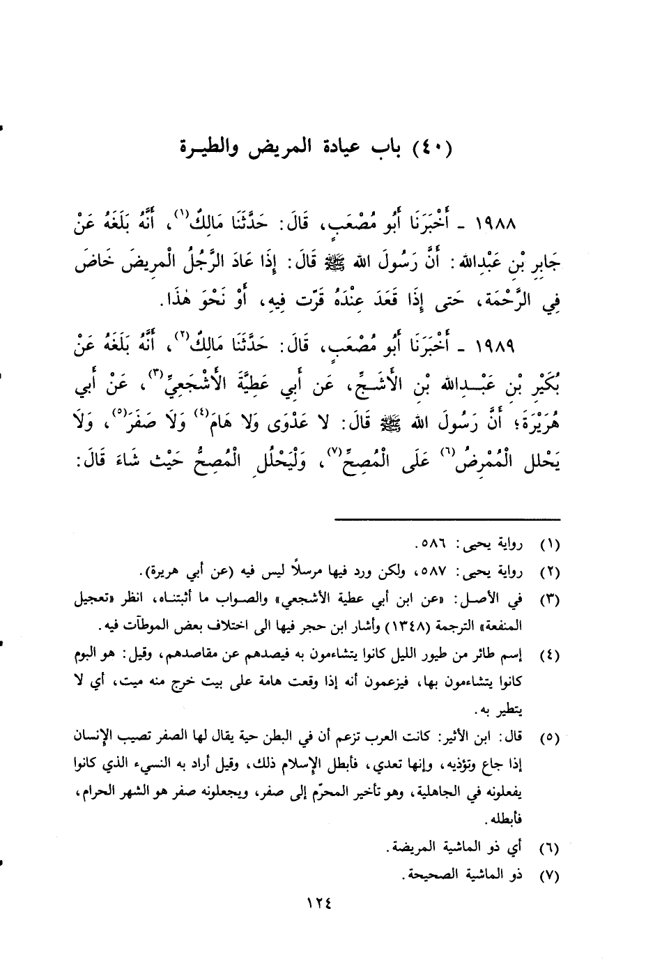 ١٩٨٩ - أَخْبَرَنَا أَبُو مُصْعَبٍ، قَالَ: حَدَّثَنَا مَالِكٌ؛ أَنَّهُ بَلَغَهُ عَنْ بُكَيْرِ بْنِ عَبْدِ اللهِ بْنِ الأََشَجِّ، عَنْ أَبِي عَطِيَّةَ الأَشْجَعِيِّ عن أبي هربرة، أَنَّ رَسُولَ اللهِ صَلَّى اللَّهُ عَلَيْهِ وَسَلَّمَ قَالَ: لَا عَدْوَى، وَلَا هَامَ، وَلَا صَفَرَ، وَلَا يَحُلَّ الْمُمْرِضُ عَلَى الْمُصِحِّ، وَلْيَحْلُلِ الْمُصِحُّ حَيْثُ شَاءَ، قَالُ: وَلمَا ذَلكَ، يَا رَسُولَ اللهِ؟ قَالَ: إِنَّهُ أَذًى.