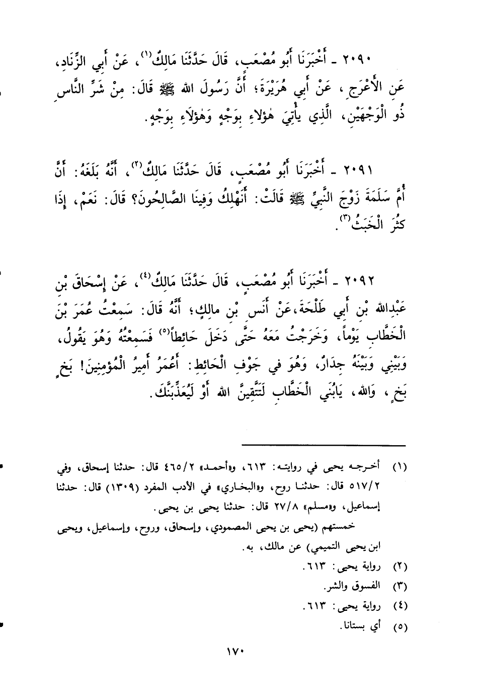 ٢٠٩٠ - أَخْبَرَنَا أَبُو مُصْعَبٍ، قَالَ: حَدَّثَنَا مَالِكٌ، عَنْ أَبِي الزِّنَادِ، عَنْ الأَعْرَجِ، عَنْ أَبِي هُرَيْرَةَ، أَنَّ رَسُولَ اللَّهِ صَلى الله عَلَيه وَسَلم قَالَ: مِنْ شَرِّ النَّاسِ ذُو الْوَجْهَيْنِ: الَّذِي يَأْتِي هَؤُلَاءِ بِوَجْهٍ وَهَؤُلَاءِ بِوَجْهٍ.