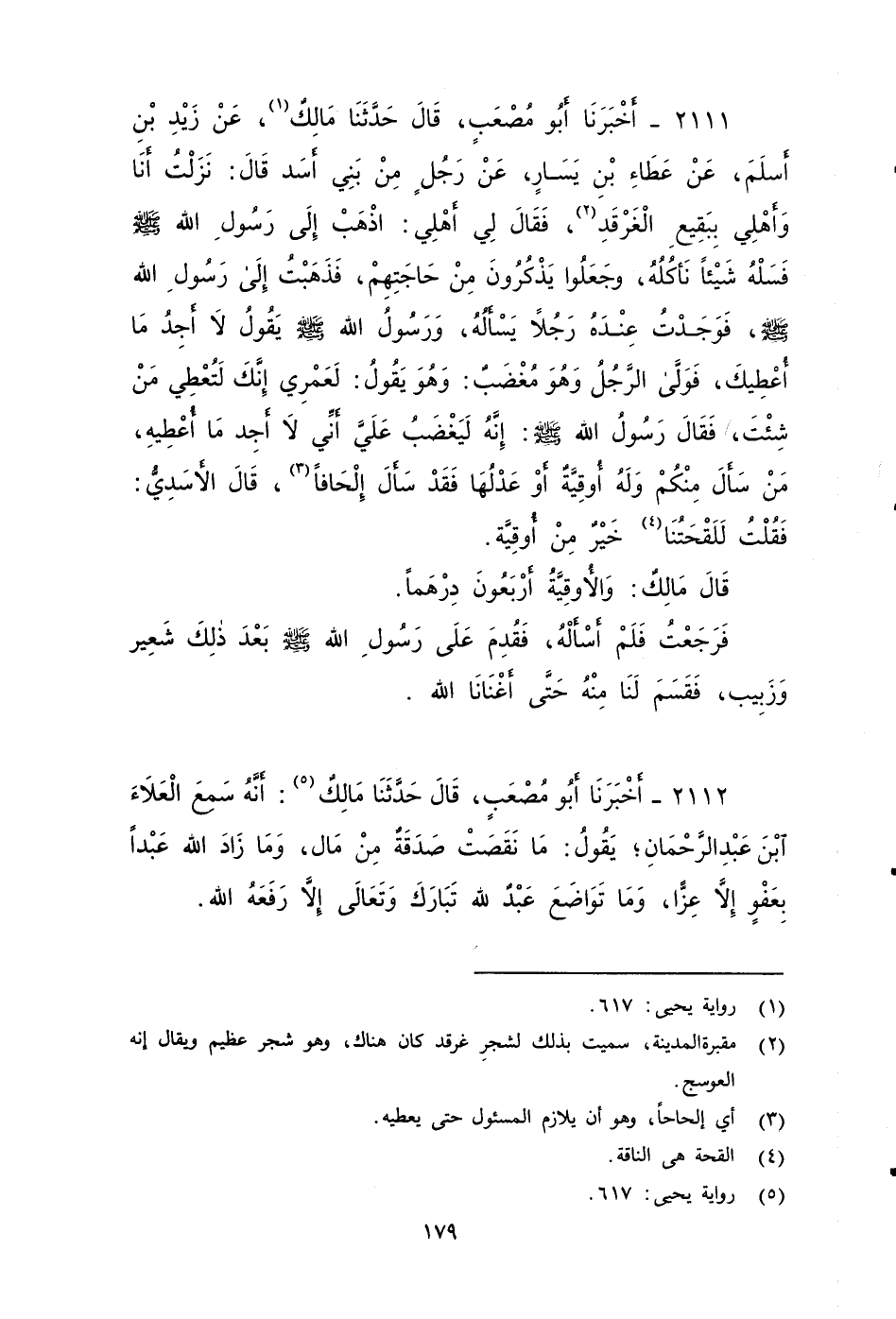 ٢١١١ - أَخْبَرَنَا أَبُو مُصْعَبٍ، قَالَ: حَدَّثَنَا مَالِكٌ، عَنْ زَيْدِ بْنِ أَسْلَمَ، عَنْ عَطَاءِ بْنِ يَسَارٍ، عَنْ رَجُلٍ مِنْ بَنِي أَسَدٍ، قَالَ: نَزَلْتُ أَنَا وَأَهْلِي بِبَقِيعِ الْغَرْقَدِ، فَقَالَ لِي أَهْلِي: اذْهَبْ إِلَى رَسُولِ اللَّهِ صَلى الله عَلَيه وَسَلم، فسله شَيْئًا نَأْكُلُهُ وَجَعَلُوا يَذْكُرُونَ مِنْ حَاجَتِهِمْ، فَذَهَبْتُ إِلَى رَسُولِ اللَّهِ صَلى الله عَلَيه وَسَلم فَوَجَدْتُ عِنْدَهُ رَجُلًا يَسْأَلُهُ، وَرَسُولُ اللَّهِ صَلى الله عَلَيه وَسَلم يَقُولُ: لا أَجِدُ مَا أُعْطِيكَ، فَوَلَّى الرَّجُلُ وَهُوَ مُغْضَبٌ، وَهُوَ يَقُولُ: لَعَمْرِي إِنَّكَ لَتُعْطِي مَنْ شِئْتَ، فَقَالَ رَسُولُ اللَّهِ صَلى الله عَلَيه وَسَلم: إِنَّهُ لَيَغْضَبُ عَلَيَّ أَنْ لا أَجِدَ مَا أُعْطِيهِ، مَنْ سَأَلَ مِنْكُمْ وَلَهُ أُوقِيَّةٌ أَوْ عَدْلُهَا فَقَدْ سَأَلَ إِلْحَافًا، قَالَ الأَسَدِيُّ: فَقُلْتُ: لَلَقْحَتُنَا خَيْرٌ مِنْ أُوقِيَّةٍ.