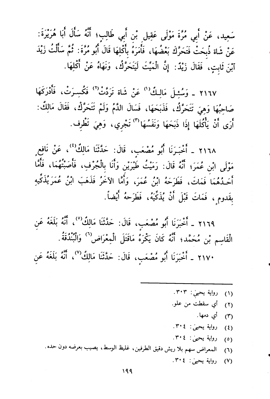 ٢١٦٩ - أَخْبَرَنَا أَبُو مُصْعَبٍ، قَالَ: حَدَّثَنَا مَالِكٌ؛ أَنَّهُ بَلَغَهُ , عنَّ الْقَاسِمَ بْنَ مُحَمَّدٍ أنه كَانَ يَكْرَهُ مَا قَتَلَ الْمِعْرَاضُ وَالْبُنْدُقَةُ.