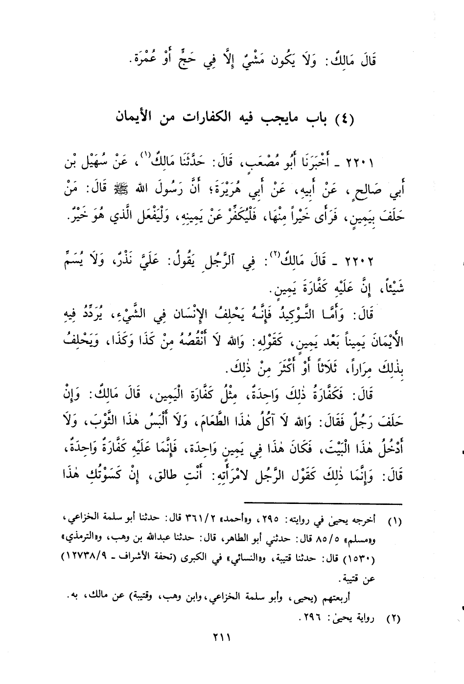 ٢٢٠١ - أَخْبَرَنَا أَبُو مُصْعَبٍ، قَالَ: حَدَّثَنَا مَالِكٌ، عَنْ سُهَيْلِ بْنِ أَبِي صَالِحٍ، عَنْ أَبِيهِ، عَنْ أَبِي هُرَيْرَةَ، أَنَّ رَسُولَ اللَّهِ صَلى الله عَلَيه وَسَلم قَالَ: مَنْ حَلَفَ بِيَمِينٍ فَرَأَى خَيْرًا مِنْهَا، فَلْيُكَفِّرْ عَنْ يَمِينِهِ وَلْيَفْعَلِ الَّذِي هُوَ خَيْرٌ.