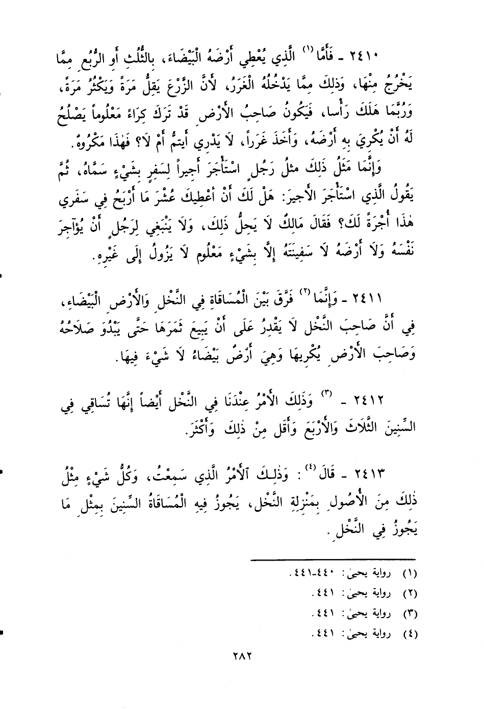 ٢٤١٣ - قَالَ: وَذَلِكَ الأَمْرُ الَّذِي سَمِعْتُ، وَكُلُّ شَيْءٍ مِثْلُ ذَلِكَ مِنَ الأَُصُولِ بِمَنْزِلَةِ النَّخْلِ، يَجُوزُ فِيهِ المسَاقَاة السِّنِينَ بمِثْلُ مَا يَجُوزُ فِي النَّخْلِ.