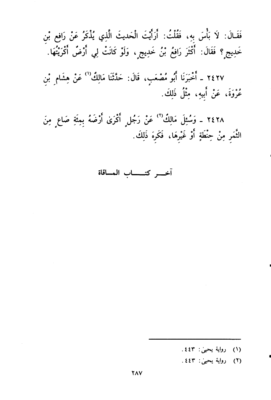 كتاب موطأ مالك رواية أبي مصعب الزهري (اسم الجزء: 2)