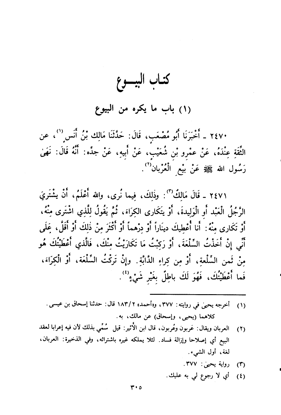 ٢٤٧٠ - أَخْبَرَنَا أَبُو مُصْعَبٍ، قَالَ: حَدَّثَنَا مَالِكٌ بن أنس، عَنِ الثِّقَةِ عِنْدَهُ، عَنْ عَمْرِو بْنِ شُعَيْبٍ، عَنْ أَبِيهِ، عَنْ جَدِّهِ، أَنَّه قال: نَهَى رَسُولَ اللهِ صَلَّى اللَّهُ عَلَيْهِ وَسَلَّمَ عَنْ بَيْعِ الْعُرْبَانِ.
