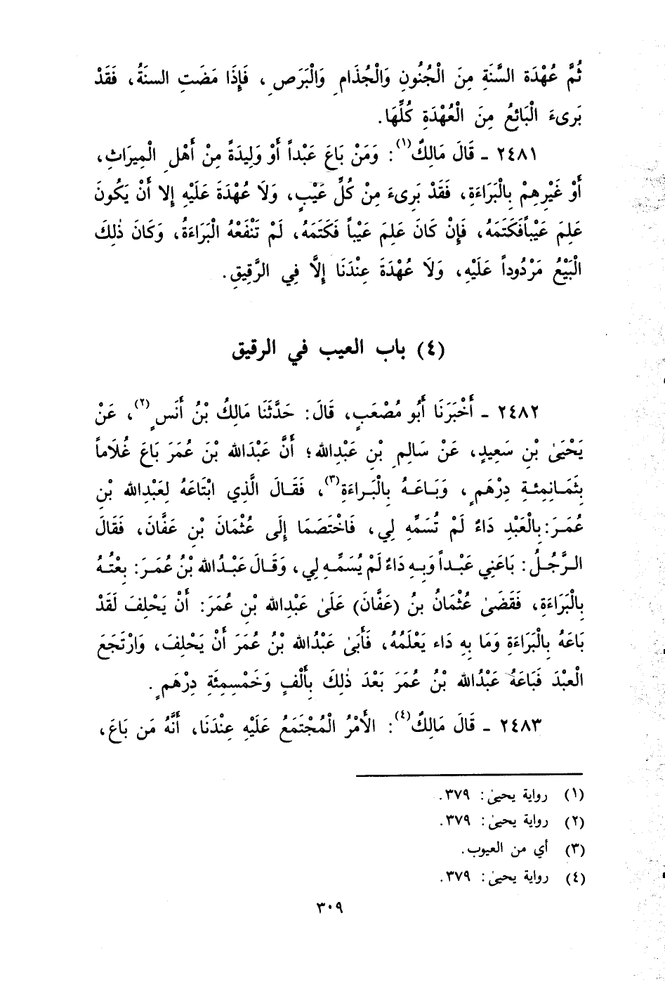 (٤) باب العيب في الرقيق