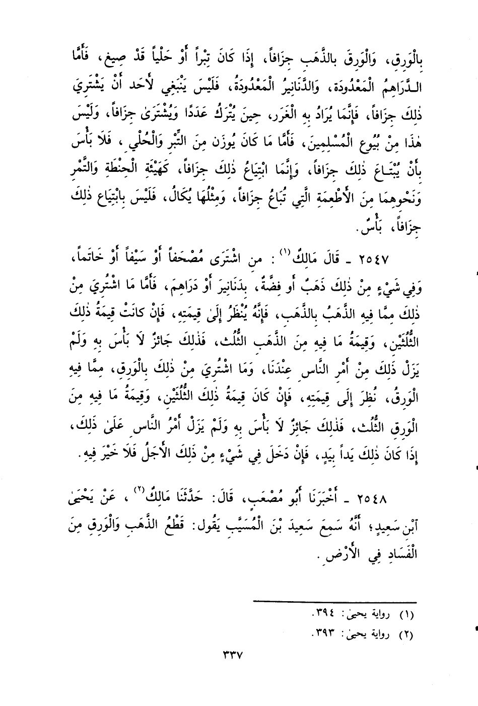 ٢٥٤٨ - أَخْبَرَنَا أَبُو مُصْعَبٍ، قَالَ: حَدَّثَنَا مَالِكٌ، عَنْ يَحْيَى بْنِ سَعِيدٍ، أَنَّهُ سَمِعَ سَعِيدَ بْنَ الْمُسَيَّبِ يَقُولُ: قَطْعُ الذَّهَبِ وَالْوَرِقِ مِنَ الْفَسَادِ فِي الأََرْضِ.