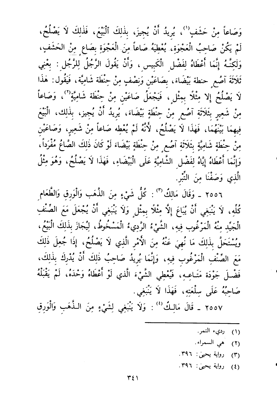 ٢٥٥٦ - قَالَ مَالِكٌ: كُلُّ شَيْءٍ مِنَ الذَّهَبِ وَالْوَرِقِ وَالطَّعَامِ كُلِّهِ لَا يَنْبَغِي أَنْ يُبَاعَ , إِلَاّ مِثْلاً بِمِثْلٍ، ولَا يَنْبَغِي أَنْ يُجْعَلَ مَعَ الصِّنْفِ الْجَيِّدِ مِنْهُ , الْمَرْغُوبِ فِيهِ , الشَّيْءُ الرَّدِيءُ الْمَسْخُوطُ، لِيُجَازَ بِذَلِكَ الْبَيْعُ، وَلِيُسْتَحَلَّ بِذَلِكَ مَا نُهِيَ عَنْهُ، مِنَ الأََمْرِ الَّذِي لَا يَصْلُحُ إِذَا جُعِلَ ذَلِكَ مَعَ الصِّنْفِ الْمَرْغُوبِ فِيهِ، وَإِنَّمَا يُرِيدُ صَاحِبُ ذَلِكَ , أَنْ يُدْرِكَ بِذَلِكَ فَضْلَ جَوْدَةِ مَتاعه، فَيُعْطِي الشَّيْءَ الَّذِي لَوْ أَعْطَاهُ وَحْدَهُ، لَمْ يَقْبَلْهُ صَاحِبُهُ , عَلَى سِلْعَتِهِ، فَهَذَا لَا يَنْبَغِي.