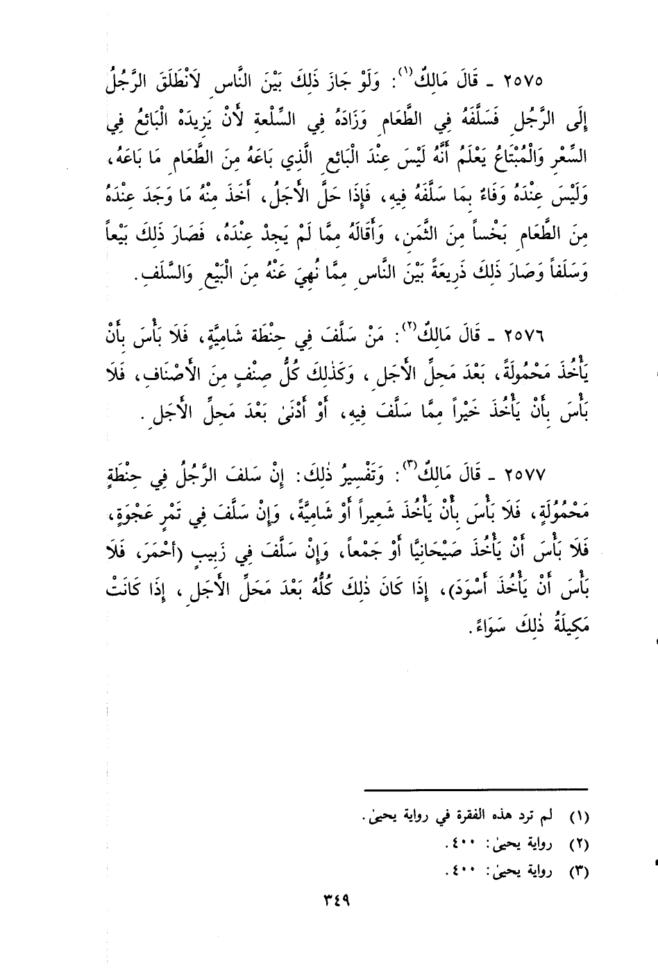 ٢٥٧٦ - قَالَ مَالِكٌ: مَنْ سَلَّفَ فِي حِنْطَةٍ شَامِيَّةٍ، فَلَا بَأْسَ بأَنْ يَأْخُذَ مَحْمُولَةً بَعْدَ مَحِلِّ الأََجَلِ , وَكَذَلِكَ كل صِنْفٍ مِنَ الأََصْنَافِ، فَلَا بَأْسَ بأَنْ يَأْخُذَ خَيْرًا مِمَّا سَلَّفَ فِيهِ أَوْ أَدْنَى بَعْدَ مَحِلِّ الأََجَلِ.