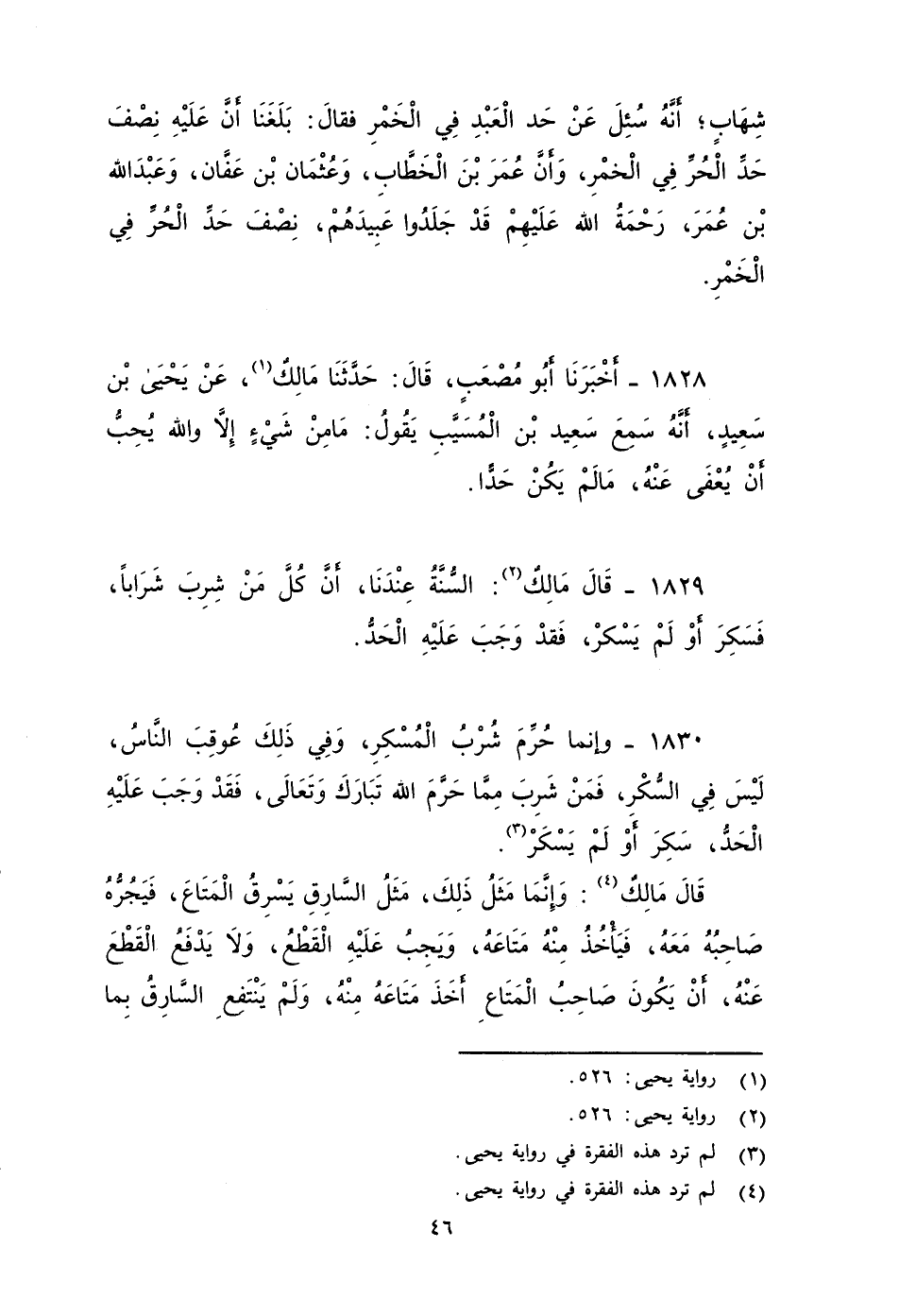 ١٨٢٩ - قَالَ مَالِكٌ: السُّنَّةُ عِنْدَنَا: أَنَّ كُلَّ مَنْ شَرِبَ شَرَابًا , فَسَكِرَ أَوْ لَمْ يَسْكَرْ , فَقَدْ وَجَبَ عَلَيْهِ الْحَدُّ.