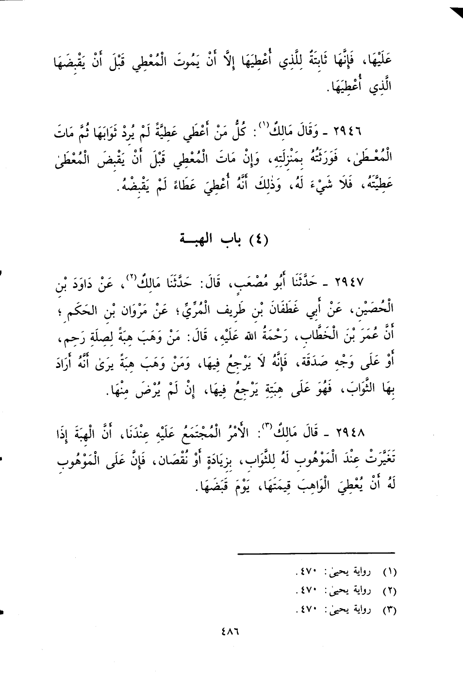 ٢٩٤٥ - قَالَ مَالِكٌ: مَنْ أَعْطَى عَطِيَّةً لَمْ يُرِيدُ ثَوَابَهَا، وَأَشْهَدَ عَلَيْهَا، فَإِنَّهَا ثَابِتَةٌ لِلَّذِي أُعْطِيَهَا , إِلَاّ أَنْ يَمُوتَ الْمُعْطِي قَبْلَ أَنْ يَقْبِضَهَا الَّذِي أُعْطِيَهَا.