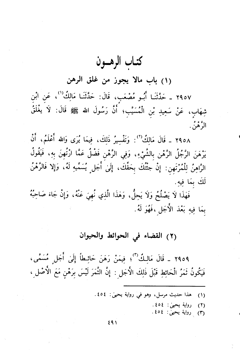 ٢٩٥٧ - حدثنَا أَبُو مُصْعَبٍ، قَالَ: حَدَّثَنَا مَالِكٌ، عَنْ ابْنِ شِهَابٍ، عَنْ سَعِيدِ بْنِ الْمُسَيَّبِ، أَنَّ رَسُولَ اللَّهِ صَلى الله عَلَيه وَسَلم، قَالَ: لا يَغْلَقُ الرَّهْنُ.