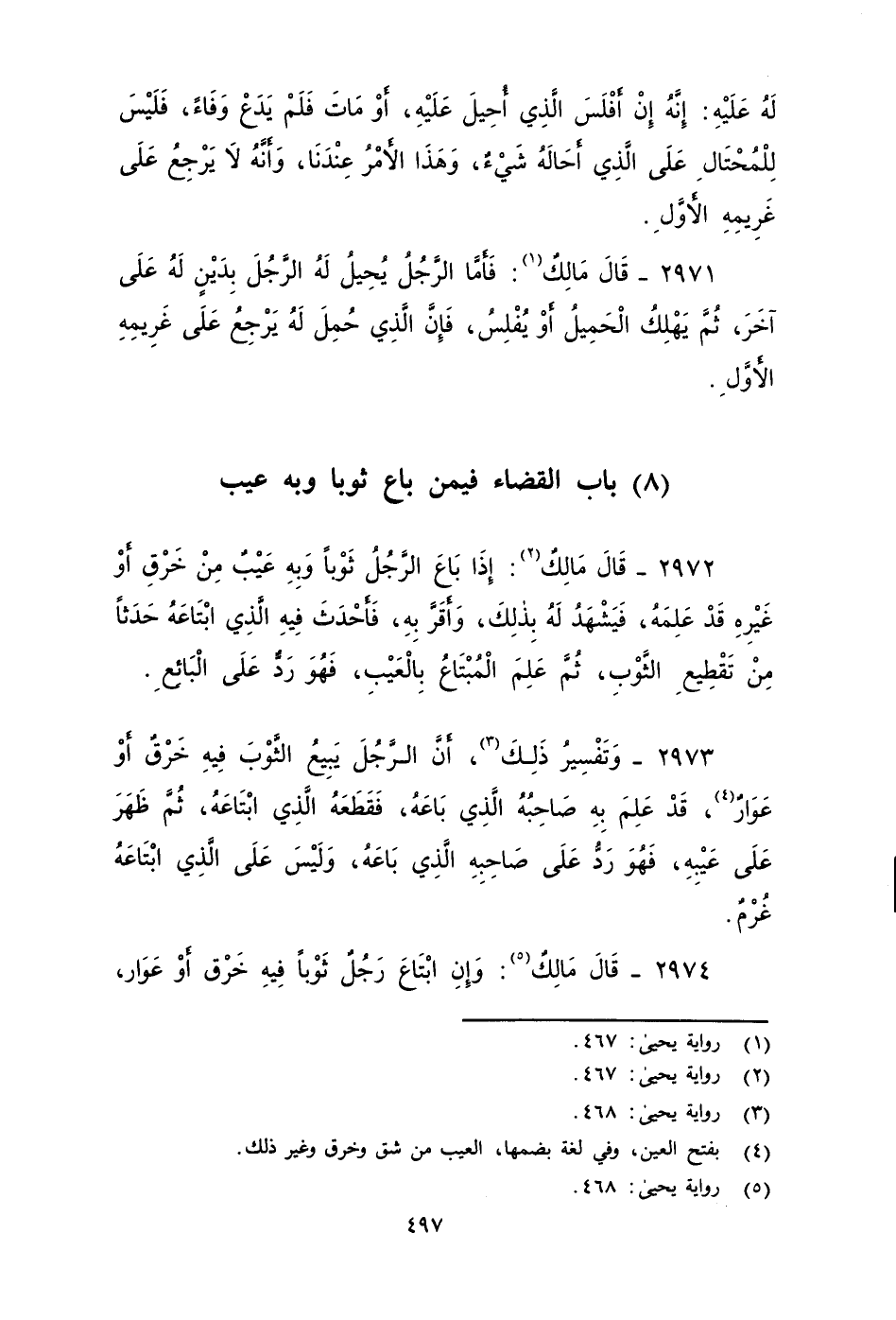 ٢٩٧٠ - قال مالك: فِي الرَّجُلِ يُحِيلُ الرَّجُلَ عَلَى رَجُلِ بِدَيْنٍ لَهُ عَلَيْهِ، إنَّهُ إِنْ أَفْلَسَ الَّذِي أُحِيلَ عَلَيْهِ، أَوْ مَاتَ , فَلَمْ يَدَعْ وَفَاءً، فَلَيْسَ لِلْمُحْتَالِ عَلَى الَّذِي أَحَالَهُ شَيْءٌ، وَهذا الأمر عندنا , وأَنَّهُ لَا يَرْجِعُ عَلَى غَرِيمِهِ الأََوَّلِ.