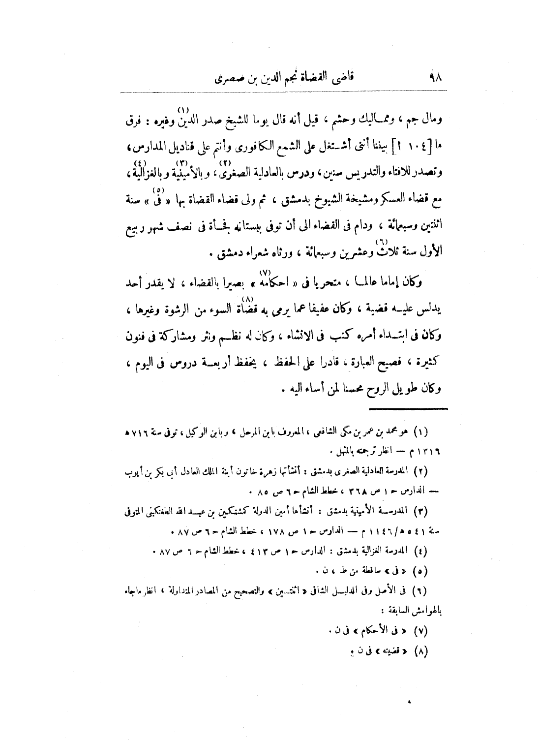 أحمد الصنهاجي، ثُمَّ لازم الشيخ شمس الدين الشطنوفي، وقرأ عَلَى الشيخ ناصر الدين البارنباري الخزرجية فِي العروض والقافية، وفصول ابن الهائم فِي الفرائض، والنزهة فِي الحساب بالقلم، ورسالتي المارديني عَلَى ربع الدائرة، وقرأ أصول الفقه وأصول الدين عَلَى قاضي القضاة شمس الدين البسطامي ولازمه، وقرأ عَلَيْهِ الكثير من مصنفاته وغيرها، وسمع التلويح والتوضيح فِي أصول فقه الحنفية، والهداية فِي مذهب الإمام أبي حنيفة رضي الله عنه، وشرح المفتاح فِي المعاني