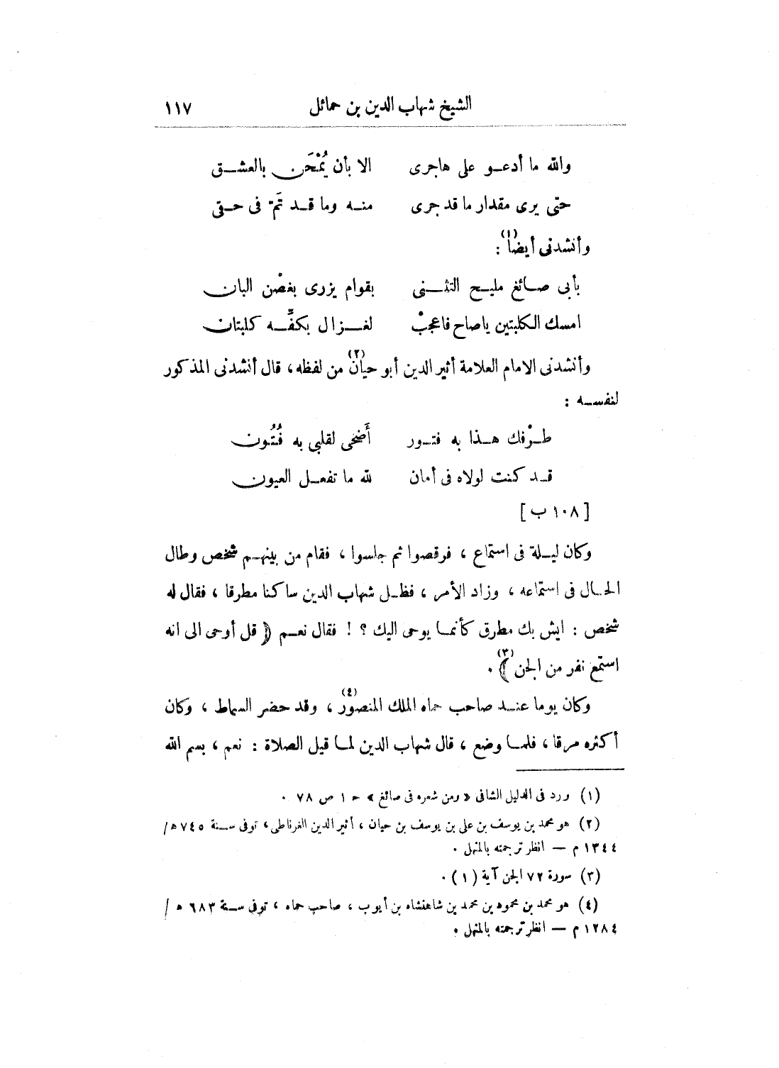 وكان الشيخ تاج الدين هذا من كبار القائمين عَلَى الشيخ تقي الدين بن تيمية، وكانت عليه جلالة ومهابة، وله أدب وفضل، ومن شعره: