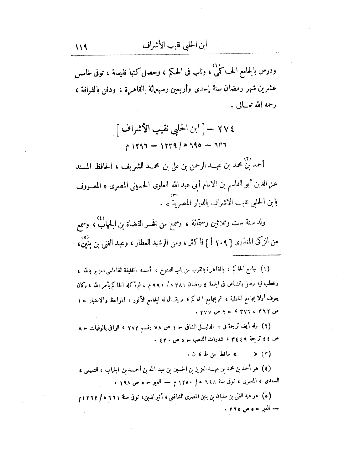 قال الحافظ الذهبي: وبه افتتحت السماع بالديار المصرية وبه اختتمت، وعنده نزلت وعلى آجايزه اتكلت.