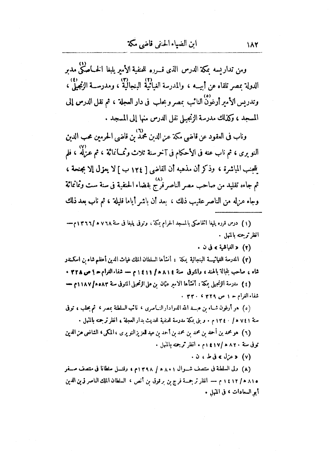وَكَانَ لا يناظر تعظيماً لفضيلته، بل تورد الأسئلة بَيْنَ يديه ثُمَّ يسمع مَا يجيب فِيهَا، وله تأليف عَلَى تراجم صحيح البخاري، وولي قضاء الإسكندرية وخطابتها مرتين، ودرس بعدة مدارس.
