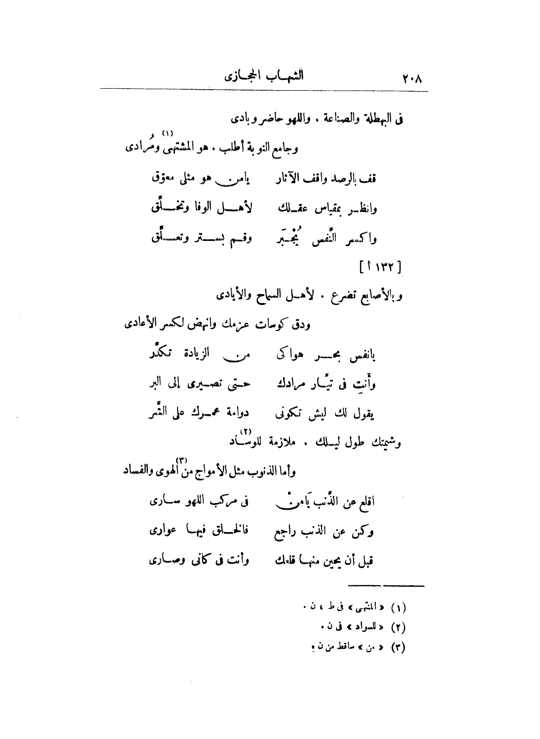 وكان عنده حذق وذوق ومحاضرة حسنة، وكرم وتواضع، مع بلاغة وفصاحة عبارة، وإقدام وطلاقة لسان، بحاثاً مستحضراً ذكياً، وَكَانَ يجالس الملك المؤيد شيخ وينادمه، ومما وقع لَهُ من حسن الاستدراك معه أن الملك
