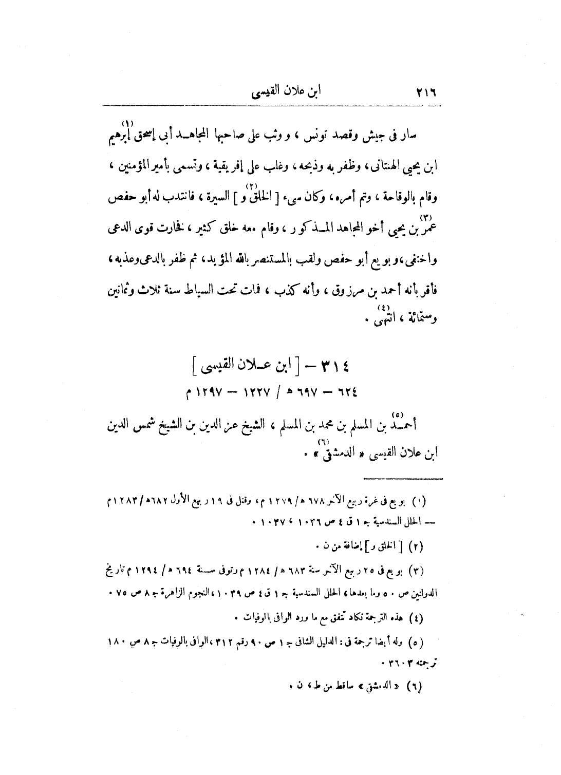 وأمنوا رعيه وخلعوا عليه، وكان الذي أخلع عليه والدي، فغضب الأمير تنم نائب الشام في الباطن وأرسل بعد قدومه إلى دمشق يعرف بذلك الملك الظاهر برقوق، واتهم والدي عَلَى العصيان، ليس هذا محل ذكر ما وقع لهما، والمقصود أن القاضي برهان الدين اطمأن في مملكة سيواس، ودام بها إلى سنة ثمانمائة، قصده عثمان بن طر عَلَى المدعو قرايلك، ووصل إلى سيواس فخرج لقتاله القاضي برهان الدين بعساكر سيواس، وتقاتلا فكسر القاضي برهان الدين وقتل بظاهر سيواس، واستمرت سيواس بغير حاكم، إلى أن أرسل إليها أبو يزيد بن عثمان حاكماً، ودامت مضافة إلى مملكته إلى يومنا هذا.