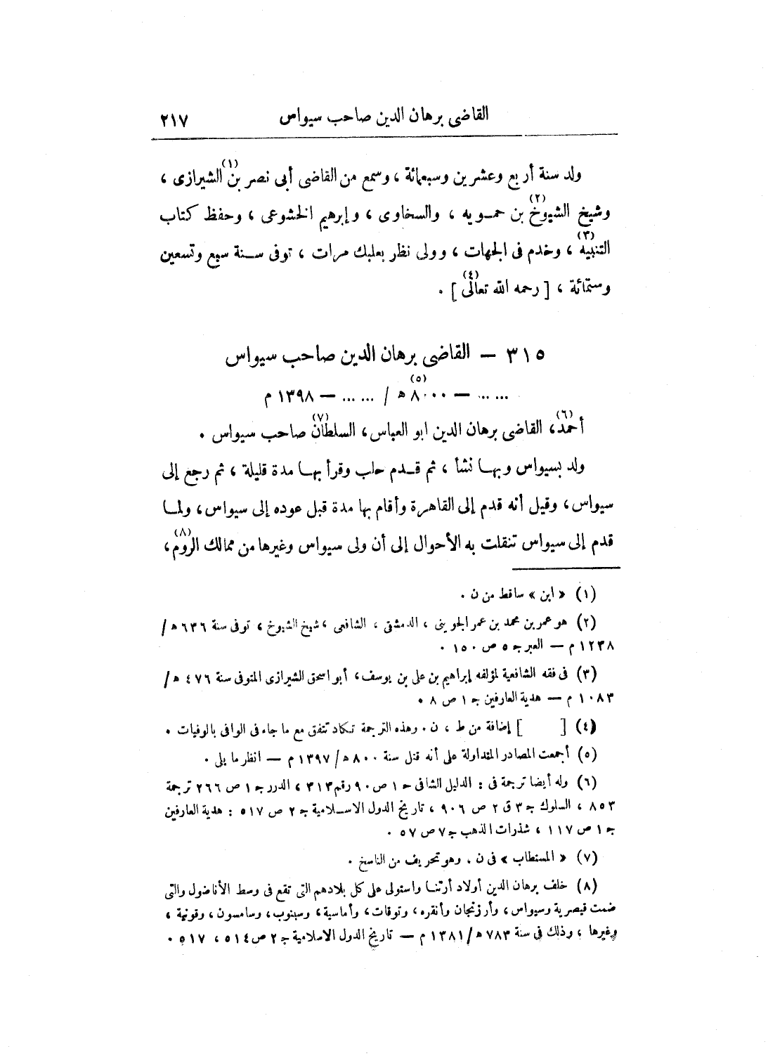 قال تقي الدين المقريزي: القاضي برهان الدين أبو العباس أحمد حاكم قيصيرية وتوقات وسيواس، أعلم أن ممالك الروم كانت أخيراً لبني قليج أرسلان الذين أقاموا بها دين الإسلام لما انتزعوها من يد ملك القسطنطينية، وكان كرسيهم قونية، وأعمالهم كثيرة جداً، حَتَّى بعث منكوقان أخو هولاكو في سنة أربع وخمسين وستمائة عسكراً عليه بيكو إلى بلاد الروم فملك آرزن الروم، وغاب في بلاد الروم حَتَّى هلك، وولي الروم بعده صمغار، وغلبت التركمان عَلَى الجبال والثغور والسواحل، فولاهم هولاكو ما غلبوا عليه، وكان صمغار، فبعث الملك أبغا بن هولاكو عوضه تداون، وتوفوا في سنة خمس وسبعين وستمائة، قتلهما الملك الظاهر بيبرس، وملك قيصرية في محاربته لهما، فأقام آبغا عَلَى قنعرطاي، وتداول بعده عدة أمراء حَتَّى قام دمرداش بن جوبان سنة ثلاث