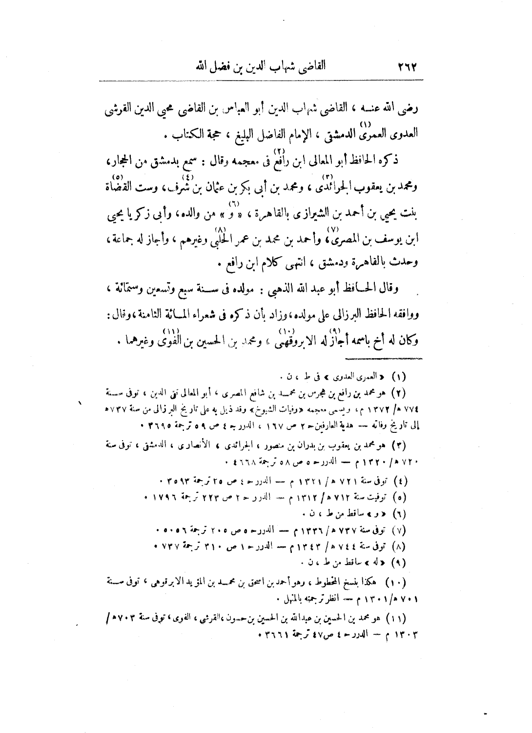 قال: ولما توفي شهاب الدين المذكور كتبت إلى أخيه القاضي علاء الدين علي بن يحيى كاتب السر بديار مصر أعزيه فيه: