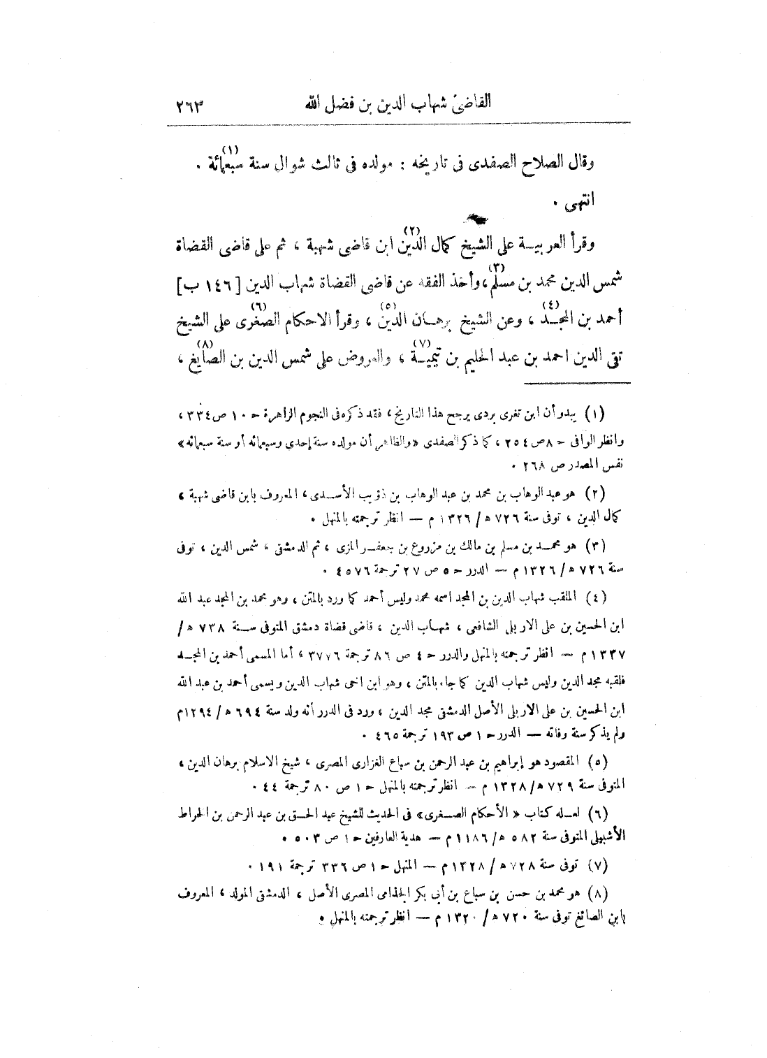 ذكره البرزالي في معجمه، وأيضاً الذهبي، قال: الأديب شمس الدين أبو الفضل، وله يد في النظم والنثر والكتابة، لكنه يرمي بالرفض، وقيل إنه كان بصيراً، وقد أنشدنا لنفسه قصيدة تدل عَلَى حسن اعتقاده والله أعلم، انتهى كلام الذهبي.