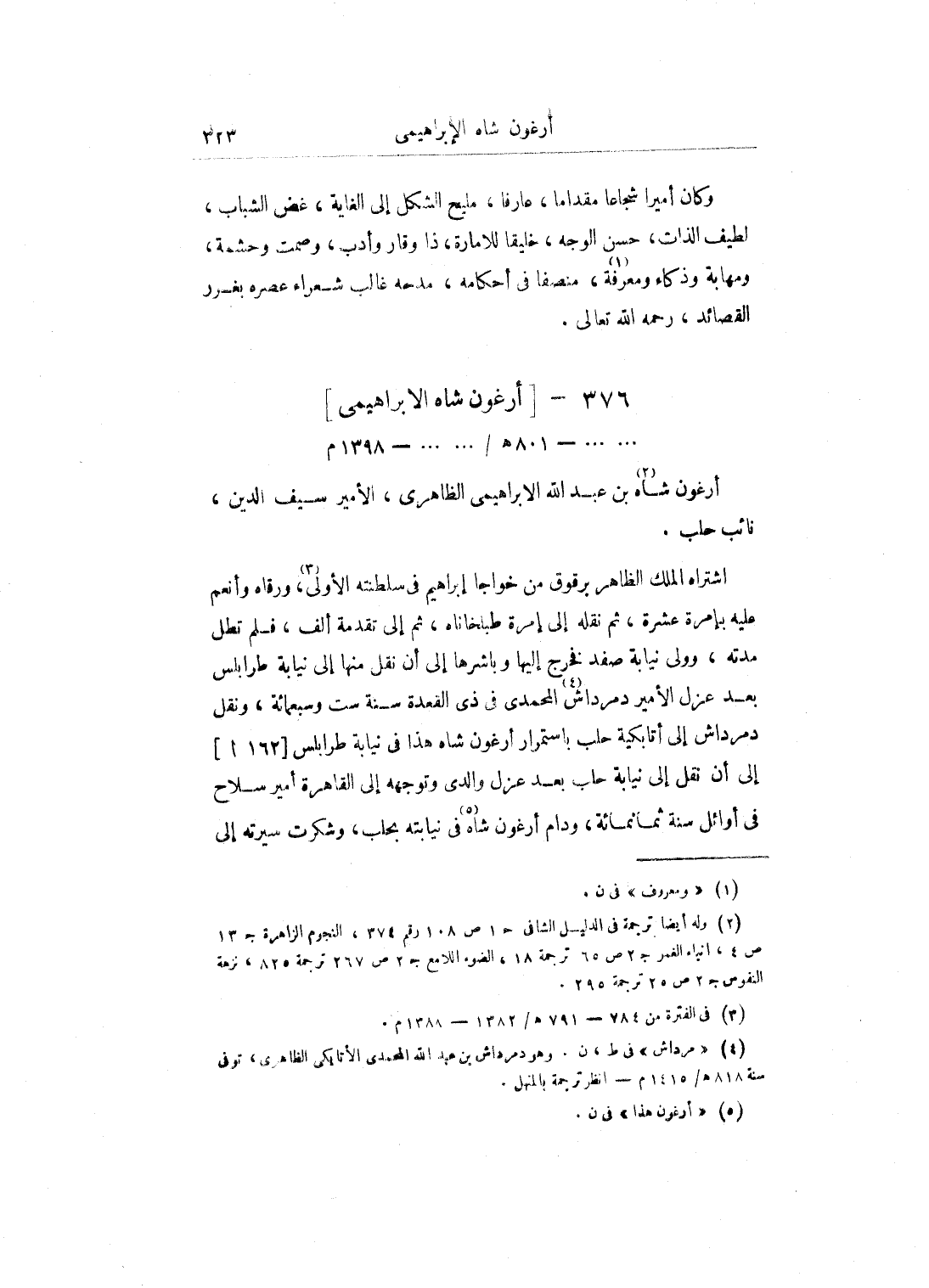 ثم إن الحال انتهى عَلَى أن يقوم أرغون شاه بمبلغ عشرة آلاف دينار، ويمهل بمبلغ عشرين ألف دينار مدة، وأفرج عنه واستمر بالقاهرة بطالا إلى يوم الخميس رابع شهر رمضان سنة سبع وعشرين وثمانمائة، أخرج هو وابن بوالي إلى دمشق، وكان ابن بوالي قد عزل عن الاستادارية بالأمير صلاح الدين محمد بن نصر الله، فدام أرغون شاه مخمولاً بدمشق دهراً، ثم استقر في استادارية السلطان بِهَا إلى أن مات في حادي عشرين شهر رجب سنة أربعين وثمانمائة وكان شيخاً أعوراً، طوالا سميناً بطيناً، شكلا مهولاً، ظالماً عسوفاً، قليل الخير، كثير الشر، يخترع الظلم، سيئة من سيئات الدهر، فلله الحمد والمنة عَلَى موته وموت أمثاله من الظلمة.
