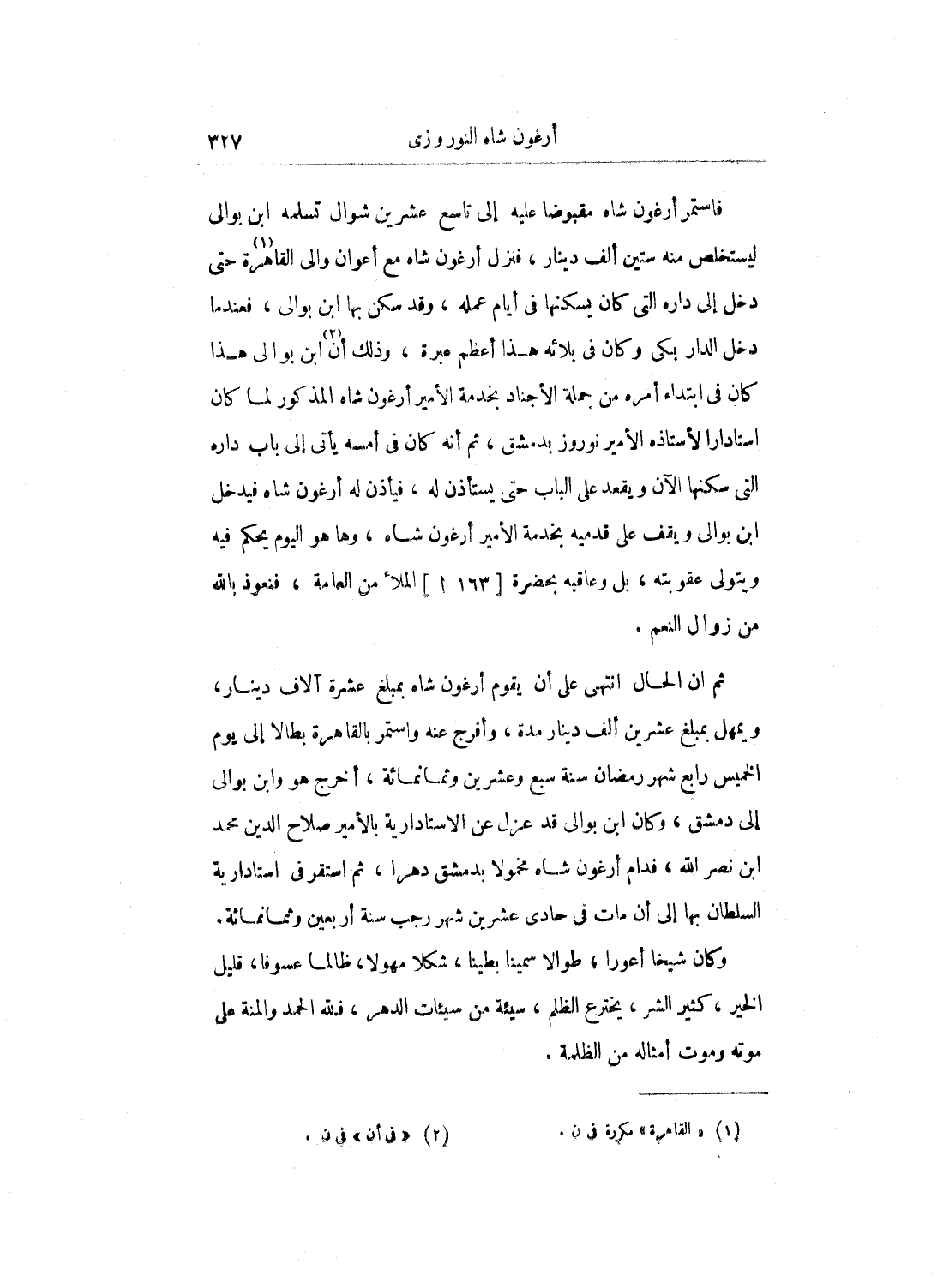 إلا أنه كان عفيفاً عن المنكرات والفروج، وأيضاً عن البر والصدقات، وكان متوسط السيرة لا يميل لا لخير ولا لشر، قليل الكلام فيما لا يعنيه، وكان له مال جم، واستمر عَلَى ذَلِكَ إلى أن تجرد صحبة الأمراء المصريين إلى أرزنكان في سنة إحدى وأربعين ومرض السلطان وهم في تلك البلاد ومات في ذي الحجة من السنة وتسلطن ولده الملك العزيز يوسف، ووقع ما سنحكيه في غير موضع، إلى أن عادوا من التجريدة، وقد استفحل أمر الأتابك جقمق، وأخذ أمر العزيز في انحطاط، فقبلوا الأرض من الإسطبل السلطاني والملك العزيز واقف بالقصر الأبلق، وخلع عليهم، ونزلوا إلى دورهم، فلم يكن إلا بعد أيام قلائل وقد خلع العزيز وتسلطن الأتابك جقمق، فمن ثم أخذ أمر أركماس هذا إلى خلف، فخلع عليه الملك الظاهر جقمق باستقراره عَلَى وظيفته الدودارية، ونزل إلى داره، وكل أحد يعلم أنه سيعزل عن قريب، فدام مدة يسيرة وأشبع بالقاهرة بمسكة ولهج الناس بذلك، فبادر أركماس المذكور وطلب الإقالة واستعفى من الإمرة والوظيفة، وأراد التوجه إلى دمياط فرسم له بذلك، فتوجه إلى الثغر المذكور وأقام به سنين طويلة إلى أن طلب العود إلى القاهرة بطالا، فأجيب إلى ذَلِكَ وعاد إلى الديار المصرية، وقبل الأرض للسلطان الملك الظاهر جمقمق، فحصل